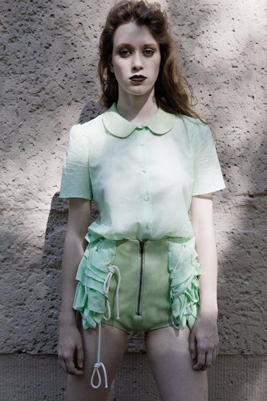 Keine andere angewandte Kunst lebt in ihrer öffentlichen Ausstrahlung so sehr von ihren Mythen wie die Mode. Alle Mechanismen, die nach dem eigentlichen Entwurfsprozess einsetzen wie Produktion, Marketing oder Kommunikation werden bewusst tabuisiert, um das stereotype Ideal des autonomen Designers nach Aussen hin aufrecht zu erhalten. Der Schwerpunkt lag in diesem Projekt auf der Analyse dieser Schritte, so dass industrielle Fertigung, Preiskalkulation oder Präsentation bewusst eingesetzt werden, um die Intention des Ausgangsgedanken des Entwurfes nicht zu schwächen sondern zu stärken.