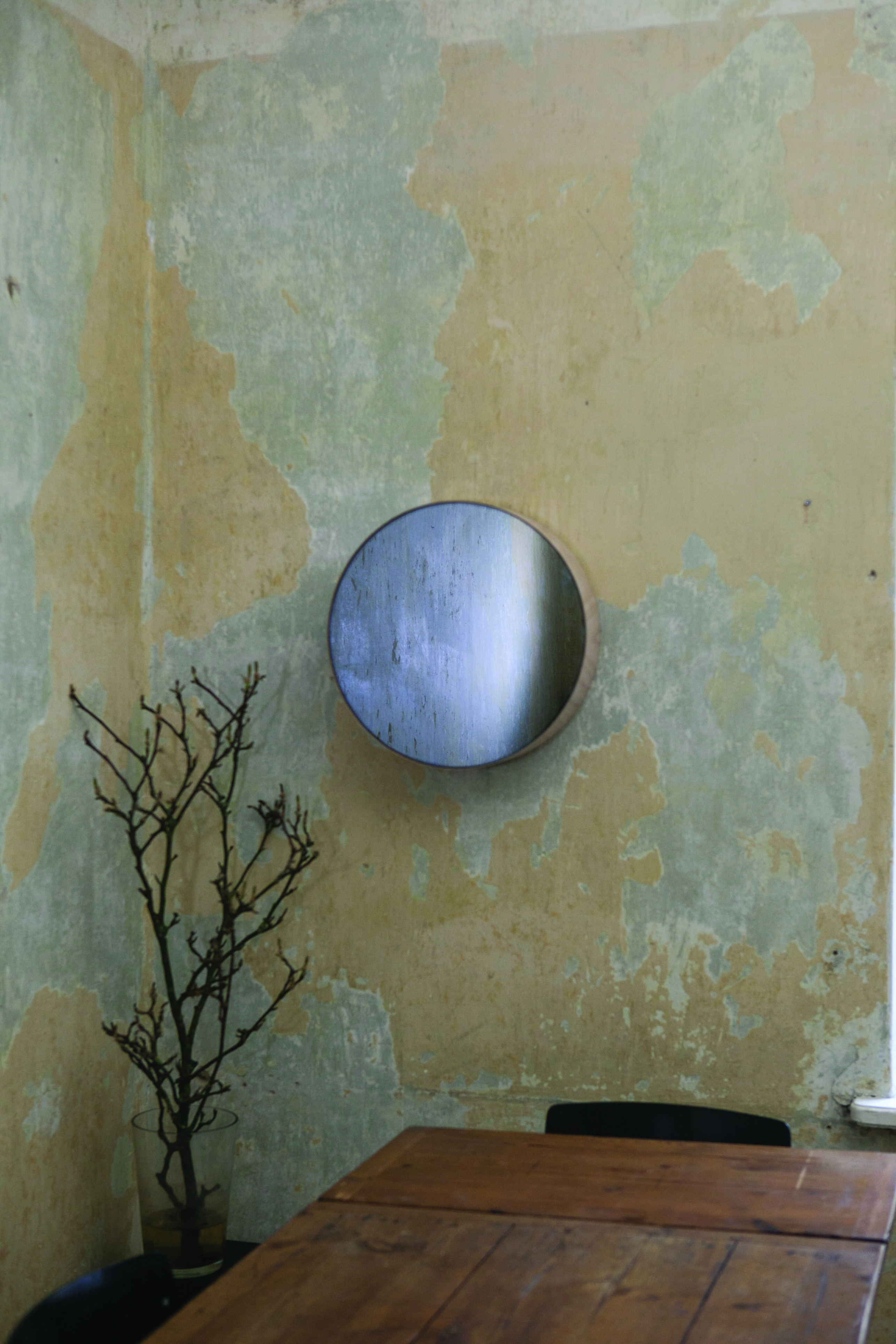 Ein Blick in den zunächst gewöhnlich erscheinenden Spiegel versetzt den Betrachter in einen Moment des Staunens. Es scheint, als blicke er in sein eigenes inneres Selbst – unzählige kleine Partikel schwirren umher. Der kalte Stein beherbergt einen ruhigen Herzschlag; die aufgelegte Hand erspürt ein subtiles Pochen – eine Erinnerung, Innezuhalten, sich eine kleine Extrazeit der 25. Stunde zu nehmen.