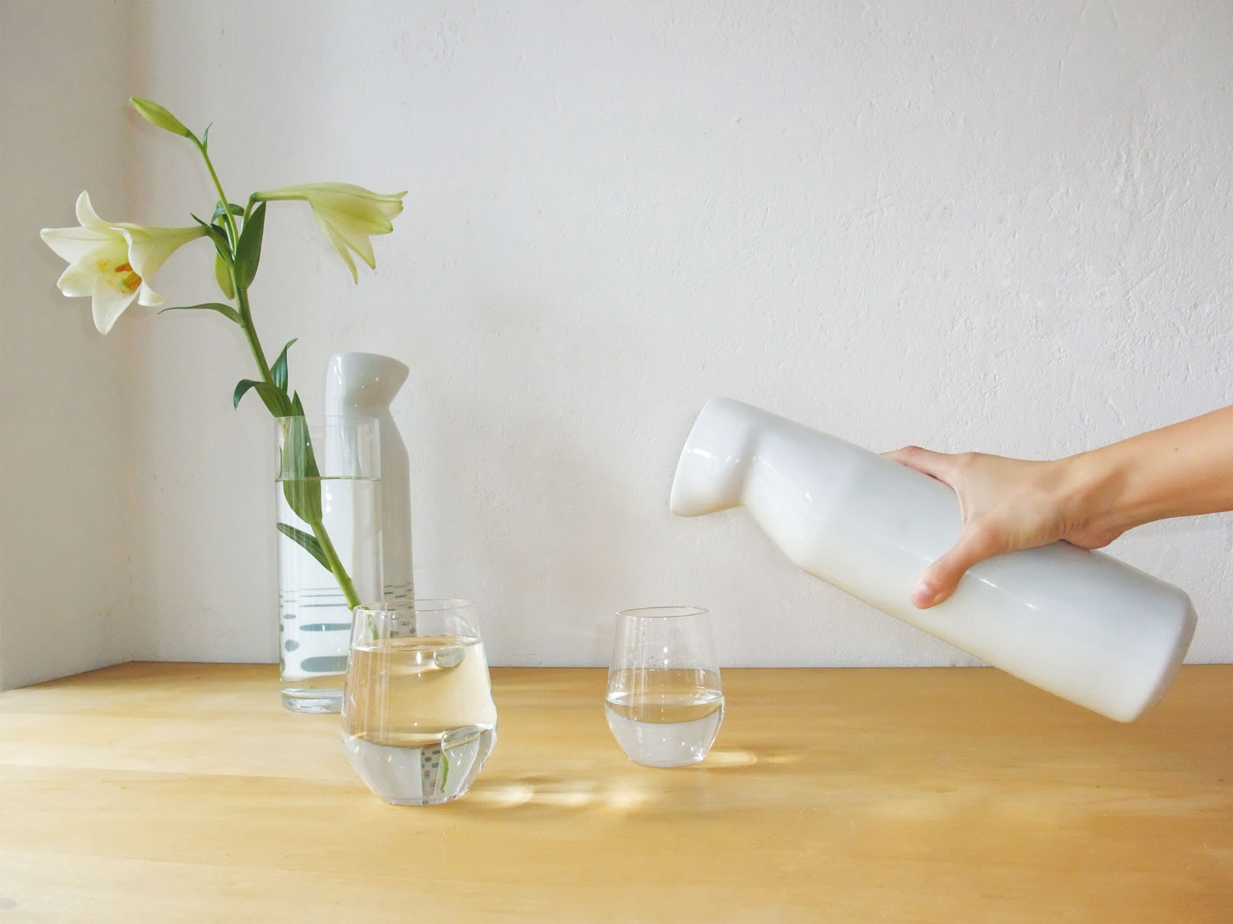 Der Wasserkrug Agua zeichnet sich durch seine schlichte Erscheinung aus. Er verbirgt etwas unvorhersehbares auf seiner Oberfläche. Sein Geheimnis zeigt sich erst durch den Gebrauch des Gefässes im Zusammenhang mit einem Wasserglas. Das interessante Spiel mit dem Wasser erschliesst sich beim Befüllen des Glases. Ein Schmetterling entfaltet sich oder Punkte werden zu Linien.