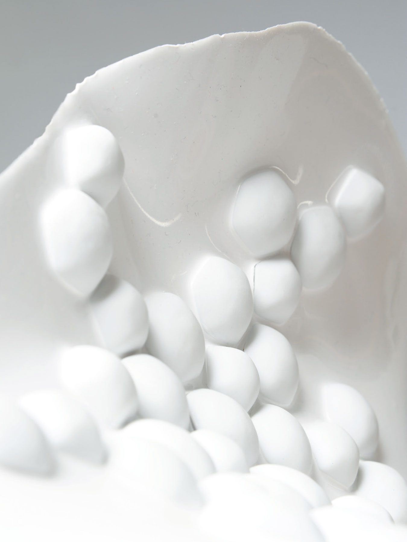 Ziel war es ein Objekt zu entwerfen, welches seinen Ursprung in einem Stillleben der Ölfarbenmalerie hat. Das Stillleben ist geprägt von monochromen Materialien unterschiedlicher Viskosität und Haptik. Als Inspiration für das fertig entworfene Objekt dienten Silikon, Gips, Zuckerkristalle und Porzellan. Desweiteren sind es natürliche,runde Formen, Zitrusfrüchte, Granatäpfel und Strukturen der Zuckerkristalle. Kleinteile, die durch ihr Zusammenfinden ein neues Ganzes ergeben, waren ausschlaggebend für meinen Entwurf. Pila ist ein kleiner Ball bestehend aus 20 hexagonalen und 12 pentagonalen, handgefertigten Formen aus Porzellan.