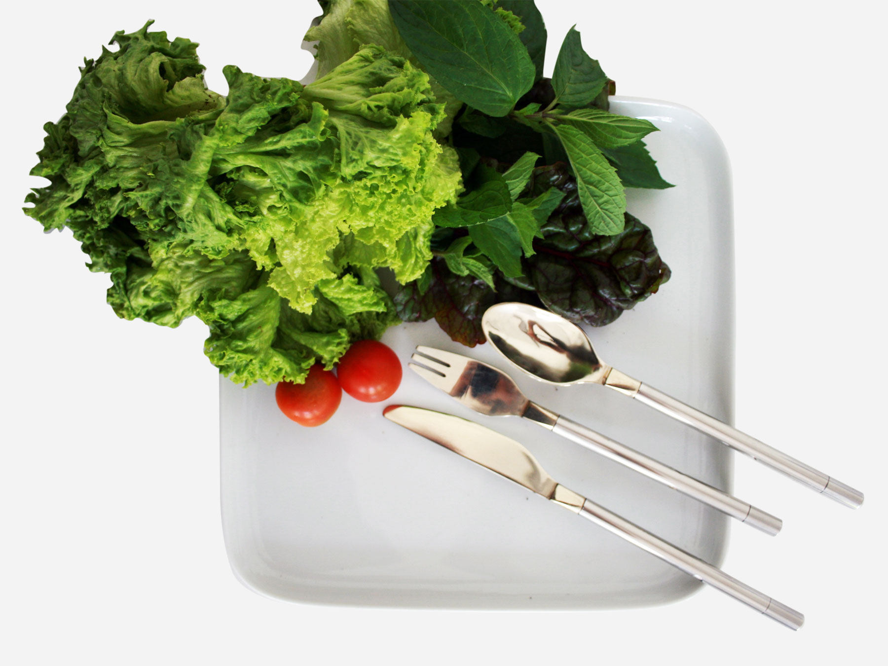 Messer, Gabel, Löffel sind bewusst klein gehalten und helfen dem Benutzer, sich beim Essen Zeit zu lassen – sein Mahl bewusst zu genießen. Die auswechselbaren Griffe ermöglichen es eine besondere Situation oder eine besonders aufwendig zubereitete Mahlzeit auch optisch hervorzuheben. Einfach den Kunststoffgriff durch einen edlen, polierten Edelstahlgriff austauschen und dem Gekochten zusätzlich einen besonderen Flair verleihen.