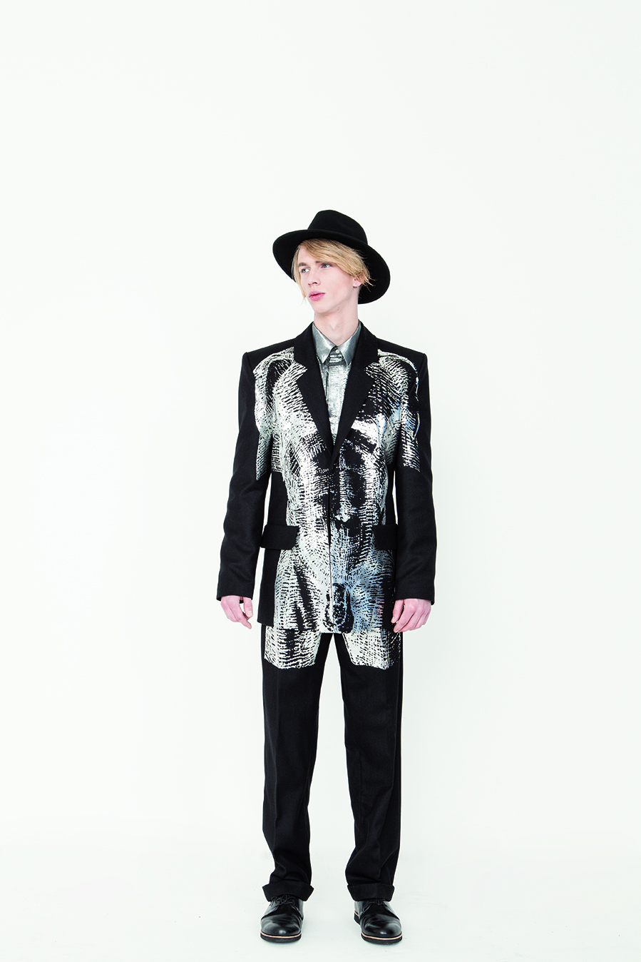 Die Kollektion geht davon aus, dass der Körper ohne die Last, die dem Menschen mit dem Sündenfall auferlegt wurde, hyperreal ist. Der Körper aus Fleisch und Blut, also der nackte Körper spielt keine Rolle. Als Vergleich werden Kleidungsreferenzen aus der Herrenmode der westlichen 1950er Jahre herangezogen. Auch hier ist der Körper in einer Idealform und wird nicht als störend wahrgenommen. Das funktioniert, solange der Mensch im Paradies ist. Nach dem Sündenfall und der Vertreibung aus dem Garten Eden bekommt der nackte Körper Relevanz, da der Mensch beginnt, sich für ihn zu schämen. Er verlangt danach, diesen zu umhüllen und zu schützen.