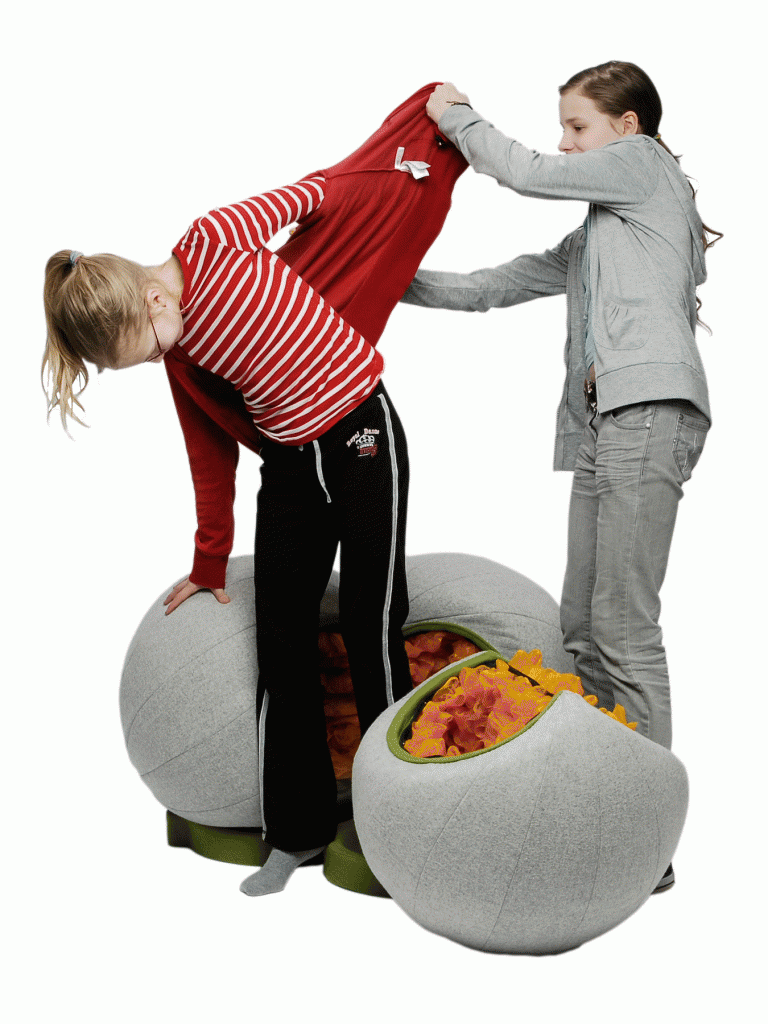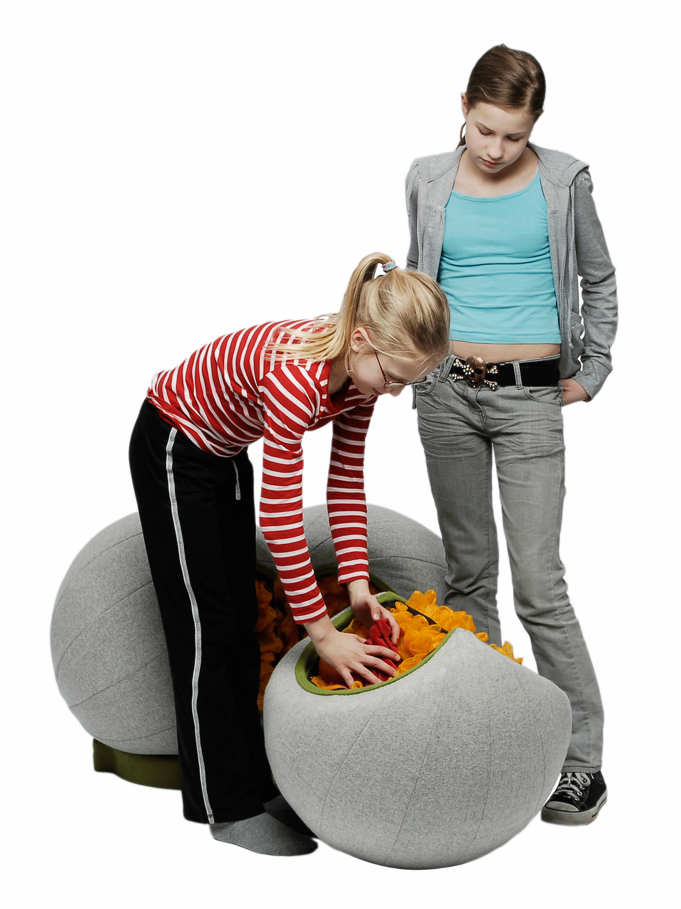 Mit WinWin wandert die Waschmaschine ins Wohnzimmer. WinWin braucht weder Wasser noch Strom, denn unsere schmutzige Kleidung schließt den Kreislauf der Reinigung. Außen weich gepolstert und als Sitzmöbel getarnt, verbirgt sich in ihrem Innern ein raffiniertes Ökosystem, welches sich der Wäsche annimmt. Wie alle Lebewesen produzieren die Mikroorganismen bei Aktivität Wärme. Wenn das Sitzmöbel befüllt und die Mikroorganismen aktiv sind, wärmt es den Sitz. Der äußere Bezug ist mit thermochromer Farbe bedruckt, sobald der Sitz abkühlt zeigt eine Farbveränderung an, dass der Reinigungsprozess abgeschlossen ist.