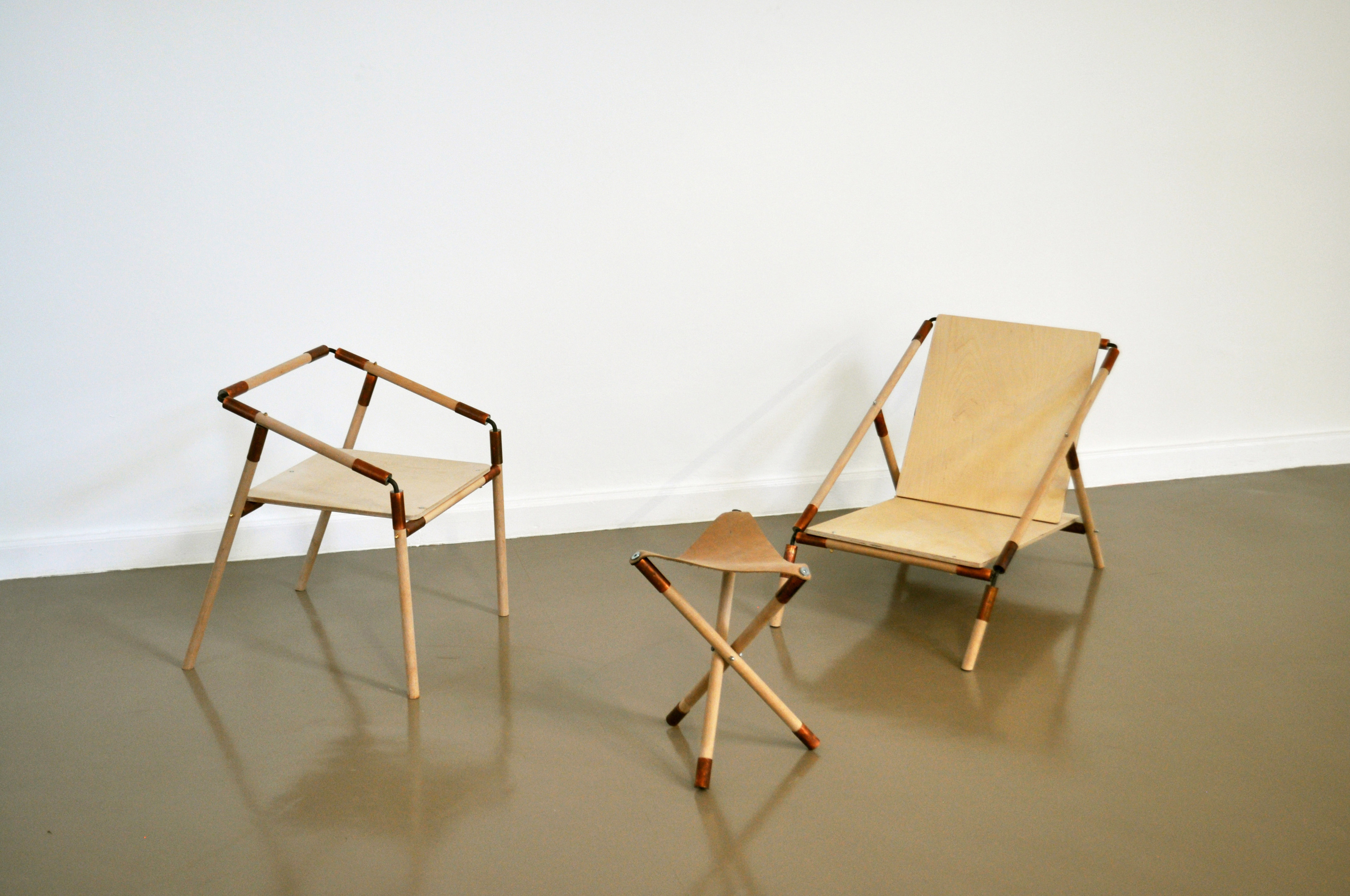 Offene Enden ist ein Designkonzept, das kein festgelegtes, fertiges Produkt hervorbringen will. Wichtig sind die Verbindungselemente, die dem Nutzer die Möglichkeit geben, je nach Wunsch einfache oder komplexere Konstrunktion zu erstellen. Und diese lassen sich mit einfach erreichbaren Holzstäben verbinden, die man bei jedem Bauhaus finden kann. Verbindungelemente verbinden die Halbzeuge somit zu einem professionellen Produkt.