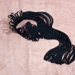 Printed One and Printed Two are the results of an exploration into the possibilities of appropriating the principles of this type of 3D printing in fashion manufacturing. The outer surfaces of the dresses are produced in a hand making process whereby a continuous strand of rope is draped across the body form. By selecting and sometimes changing the direction of the rope certain parts of the body are high-lighted and emphasis curves, muscles and or bone structures.