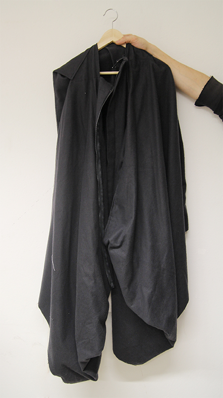 Ich bin erst einmal völlig frei an das Thema Minimalismus rangegangen und habe geguckt, welche Künstler es gibt. Spannend fand ich vor allem, in welche Richtung diese arbeiten und was genau sie machen. Aber gar nicht auf der Ebene, dass ich den Minimalismus wissenschaftlich ergründen wollte. Ich wollte vielmehr eine Art Gefühl dafür zu bekommen, was die Leute wollten, was sie angetrieben hat. Im Laufe der Recherche kamen bei mir dann zwei Ansätze, die ich mir vorstellen konnte umzusetzen. Entweder man nimmt ein Kleidungsstück und guckt, was kann ich davon wegnehmen ohne das es ein Nicht-Kleidungsstück wird oder man stellt sich die Frage, was muss ich einem Stück Stoff hinzufügen, damit es zum Kleidungsstück wird? Und für dieses Herangehensweise habe ich mich jetzt entschieden.