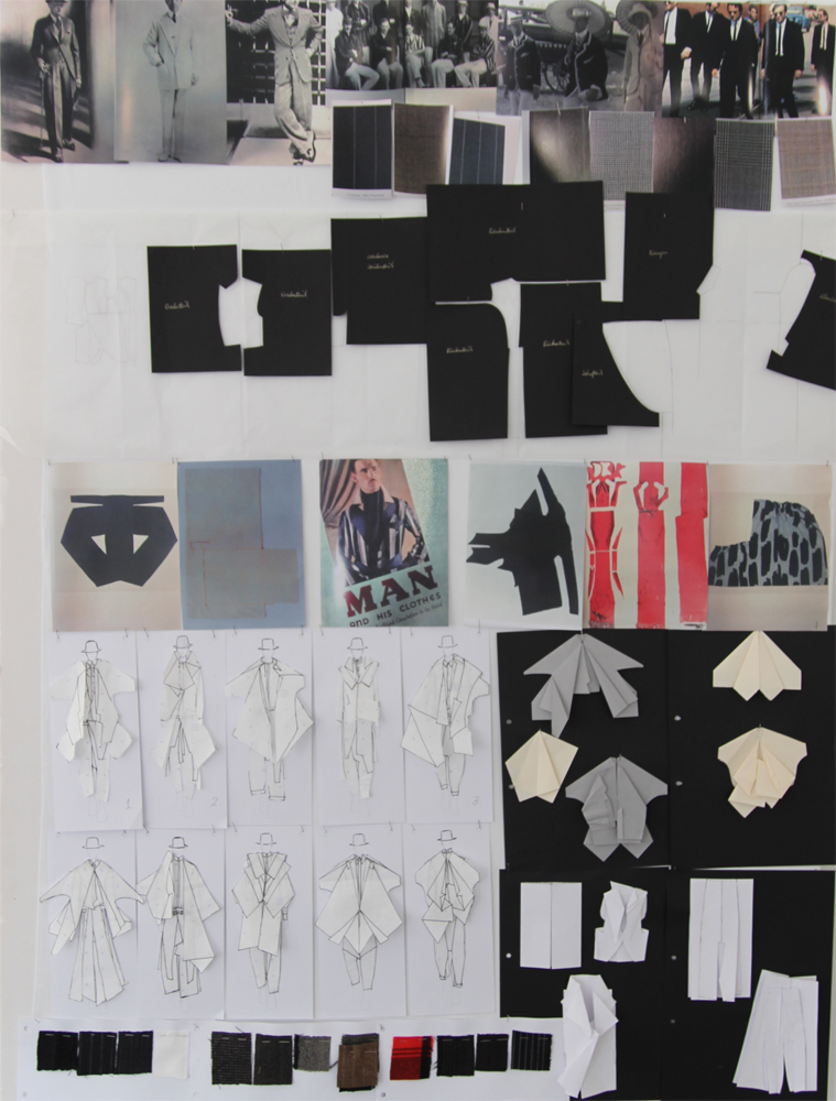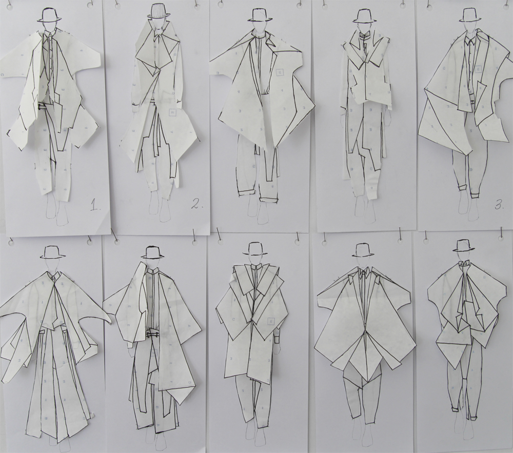 Ich habe am Anfang gedacht, das ist eine total schwierige Aufgabe. Das lässt sich nicht so einfach lösen. Dann habe ich angefangen zu recherchieren. Bisher war Herrenbekleidung immer meins, deswegen habe ich mir die Entwicklung der Herrenbekleidung in den letzten einhundert Jahren angeschaut und gemerkt, dass eigentlich im Bezug auf Silhouette gar nicht soviel passiert ist. Es ist immer noch ganz klassisch, ein Hemd, darüber eine Weste, Jackett, ein Mantel und darunter eine Hose. Deswegen ist die Frage, ob man zu dem Thema überhaupt neue Klamotten entwerfen sollte. Meiner Ansicht nach macht das überhaupt keinen Sinn.