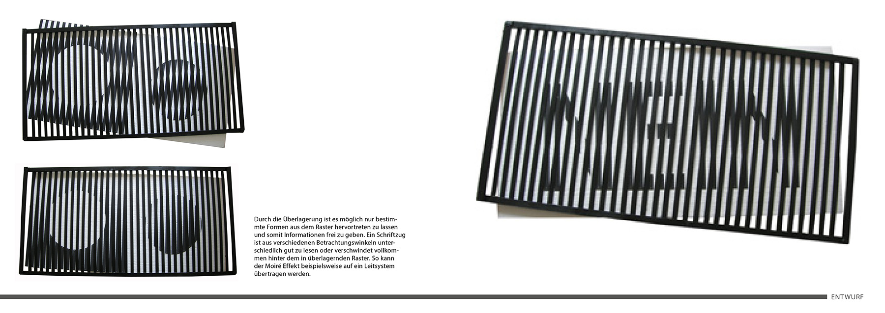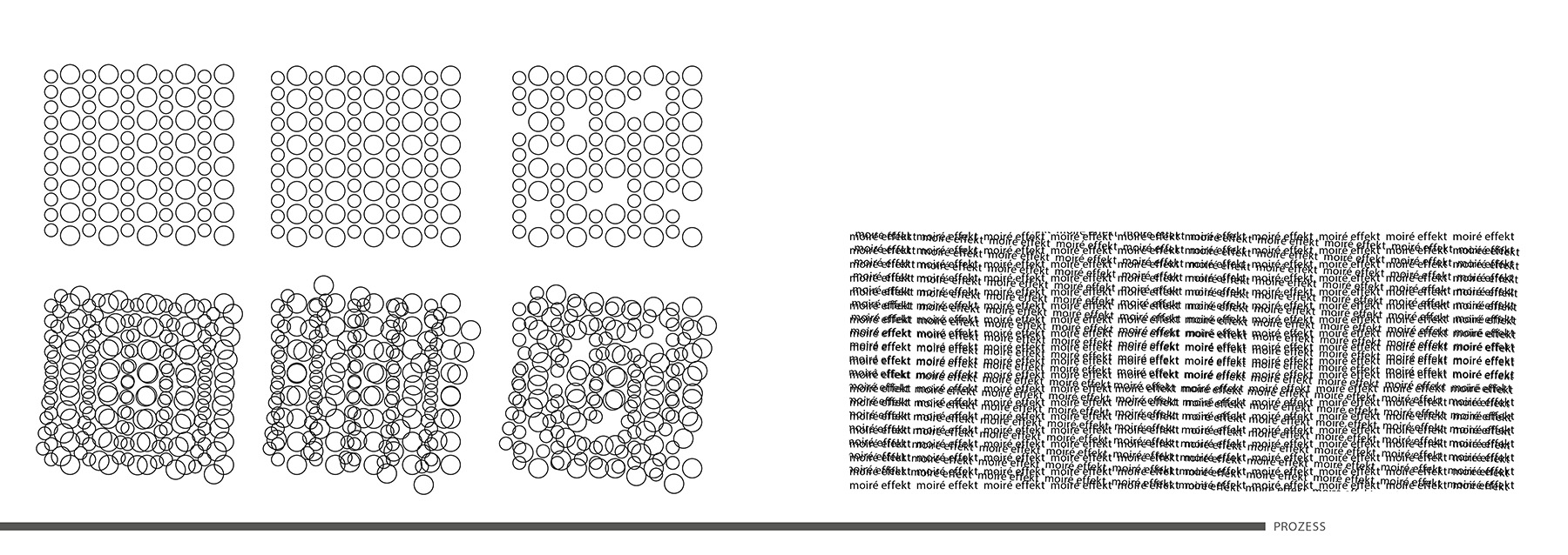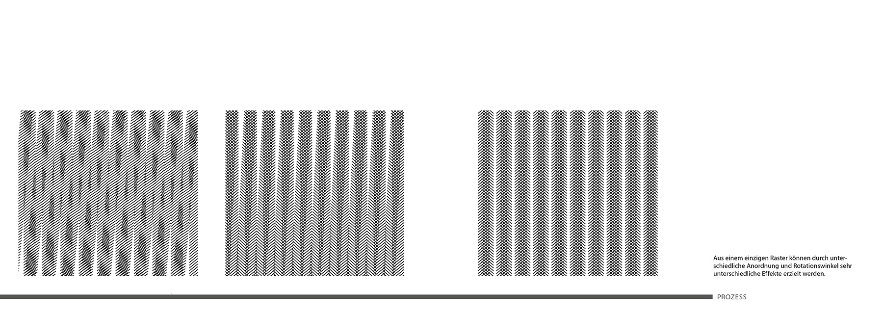 Der Moiré Effekt ist eine optische Täuschung die auftreten kann, wenn zwei Raster nicht deckungsgleich übereinander liegen. Je nachdem wie die Raster aufgebaut sind und wie stark sie gegeneinander verschoben und verdreht sind, verändern sich auch die entstehenden verschiedene Muster. Besonders interessant ist der Effekt jedoch erst, wenn sich entweder die Raster oder der Betrachter bewegt. Das Moirémuster scheint sich in einem solchen Fall zu bewegen. Der Abstand zwischen den Rastern und ihr Winkel zueinander verändert das entstehende Muster. Je unregelmäßiger das Raster ist, desto schwerer erkennbar wird der Effekt.