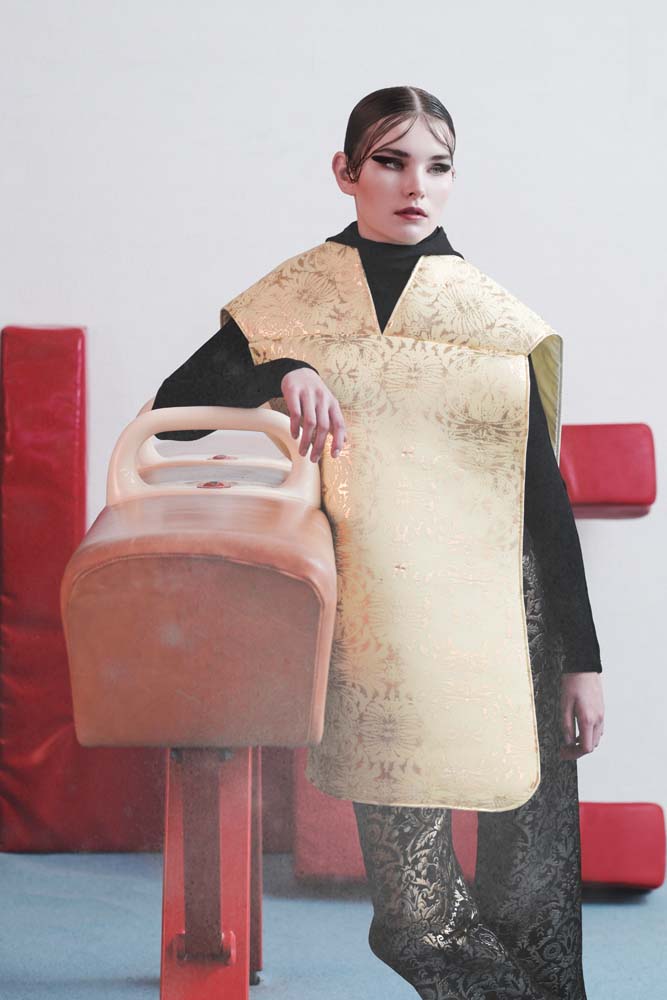 An der Grenze der Begriffe des Verstandes drängt sich, was uns ein Rätsel bleibt. Als Transzendentes übersteigt es die Vorstellung, die wir von ihm haben. Die Beziehung zu einem Seinenden, welches nicht auf einen Vorstellung oder ein Verstehen zurückgeführt werden kann, erinnert an Religion. Transzendenzerfahrungen im Sakralen und im Sport waren Ausgangspunkt der Kollektion.