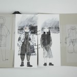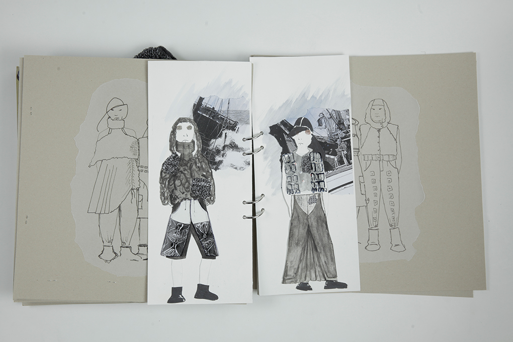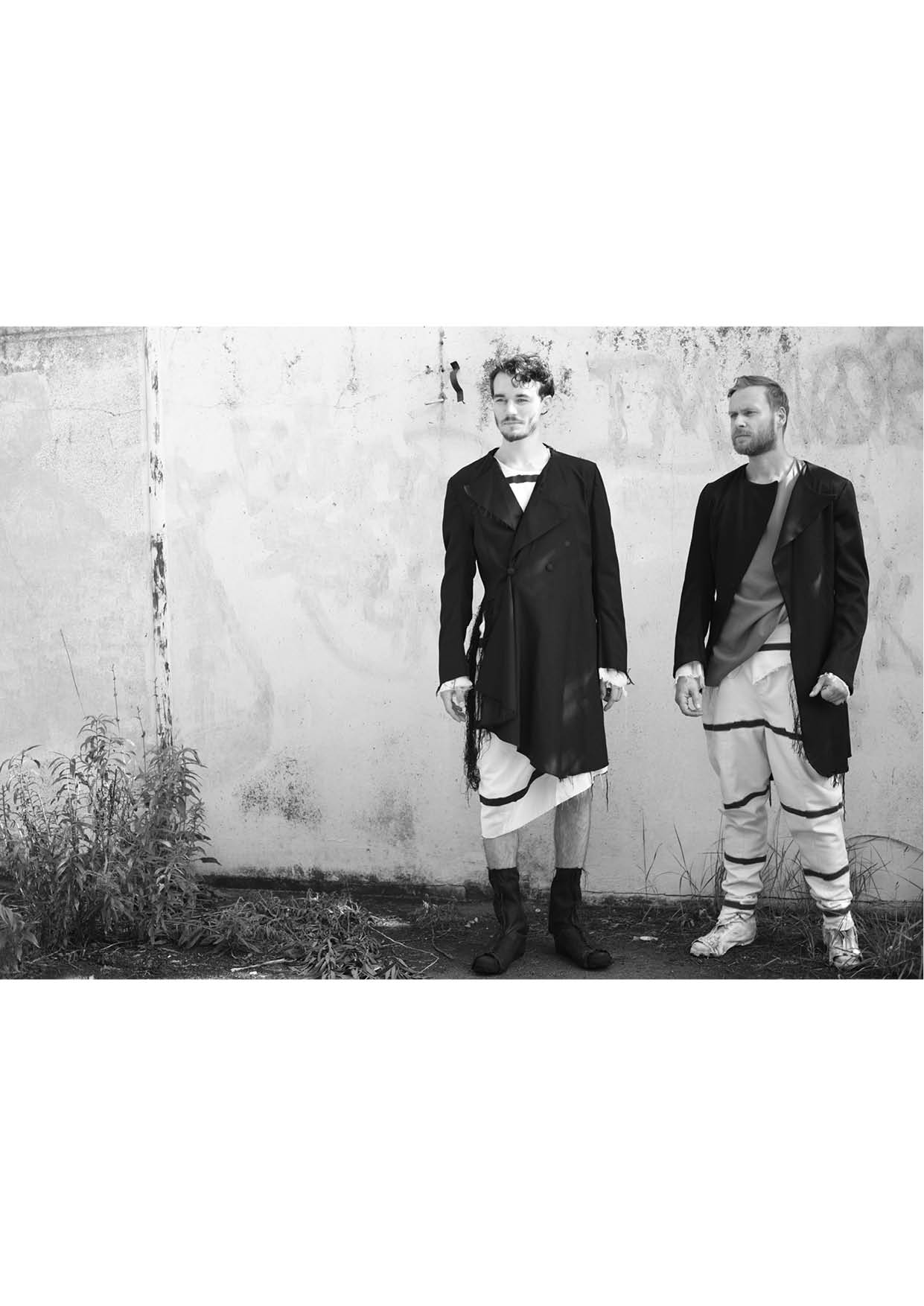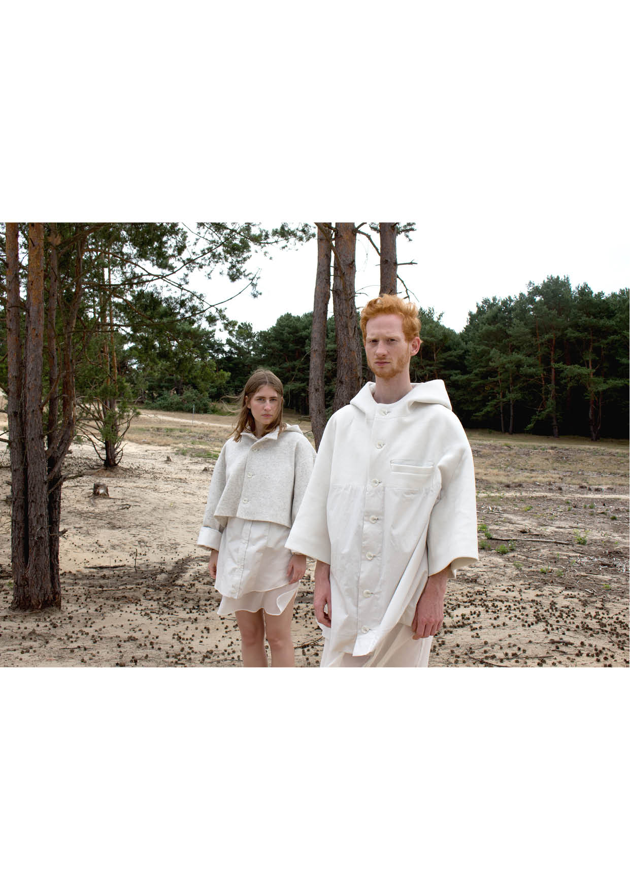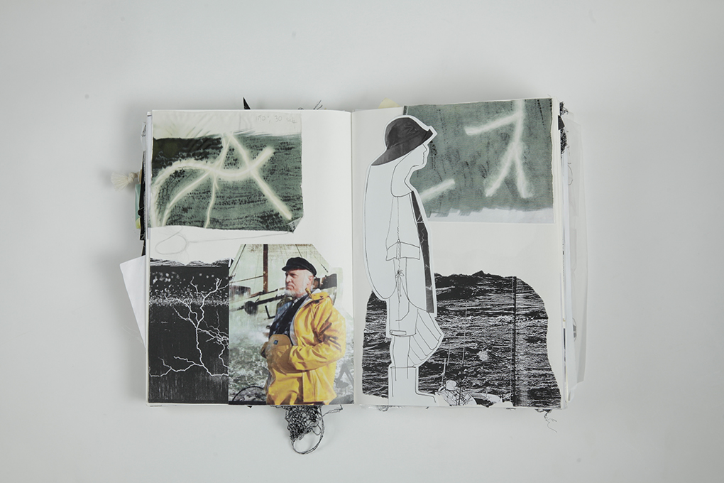 On the other side is the actual fisherman/seaman occupation. An actual life working at sea is often categorized by long periods of solitude, a very masculine working envioronment and extreme weather conditions. It is very hard work both physically and mentally. The actual modern working garments of fisher men have served as base for the silhouettes in this collection.