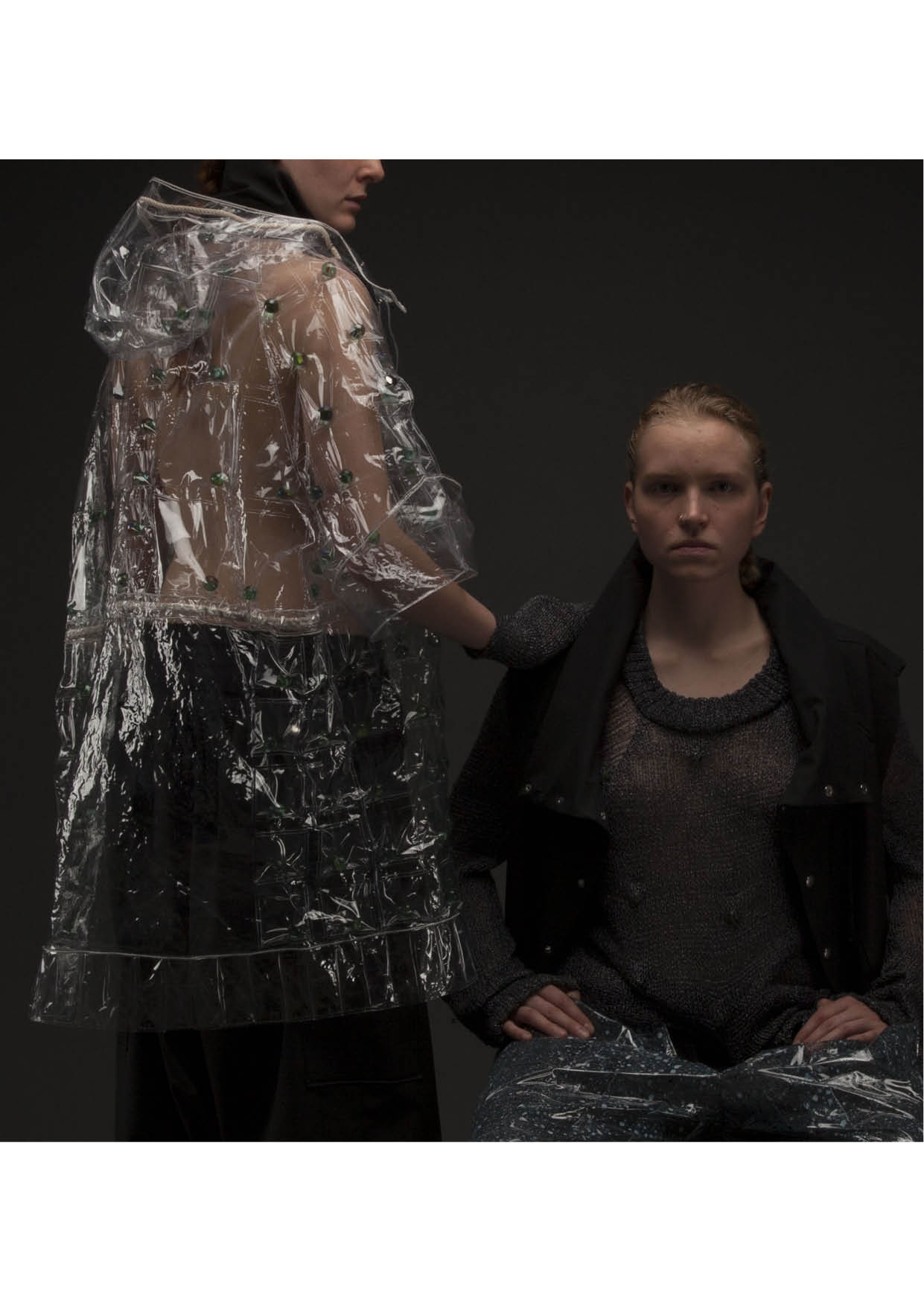 I’ve tried to unite and interpret the two worlds in fabric experiments, all of them achieved trough welding the material (welding is often used in rain garments as not to pierce the fabric and hence create possabilities for water to come in). In each piece, I’ve tried to create a clash between escapism, simplification and actual reality, as a way of dealing with the topic of romantic stereotypes and collective awareness.