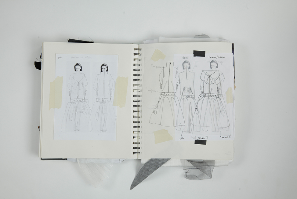 Welche Geschichte erzählt er uns? Materialität, Silhouetten, Funktionalität, Wertigkeiten, Verarbeitung, Identität – das Bennen und Erkennen dieser formellen und theoretischen Aspekte dient als Recherche für die gestalterische Grundlage des eigenen Konzeptes. Sich zu positionieren und einen wegweisenden Ausdruck der eigenen Zeit finden – Mode schaffen.