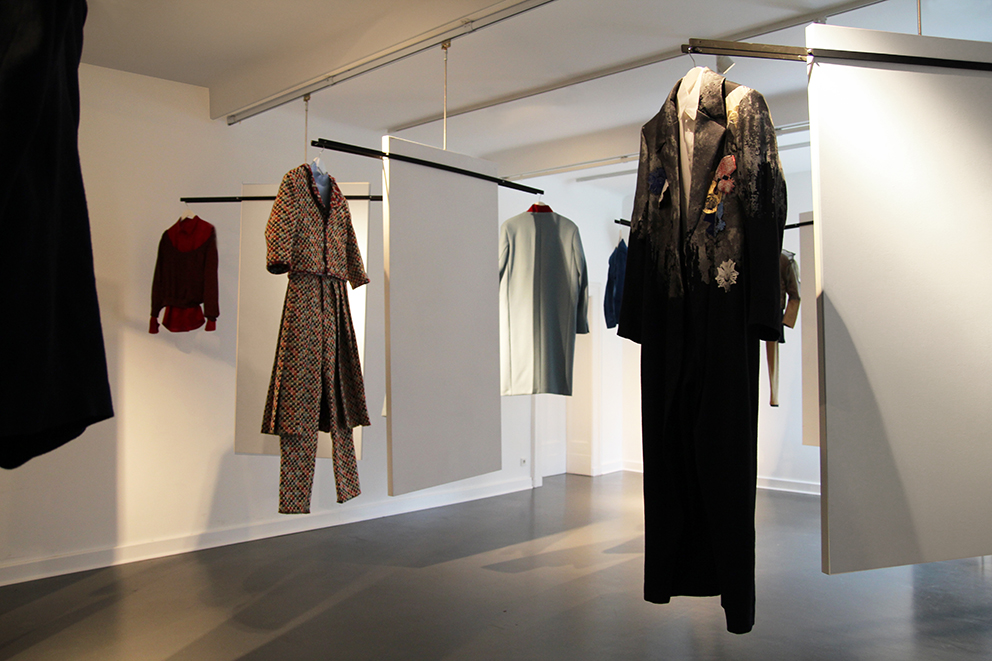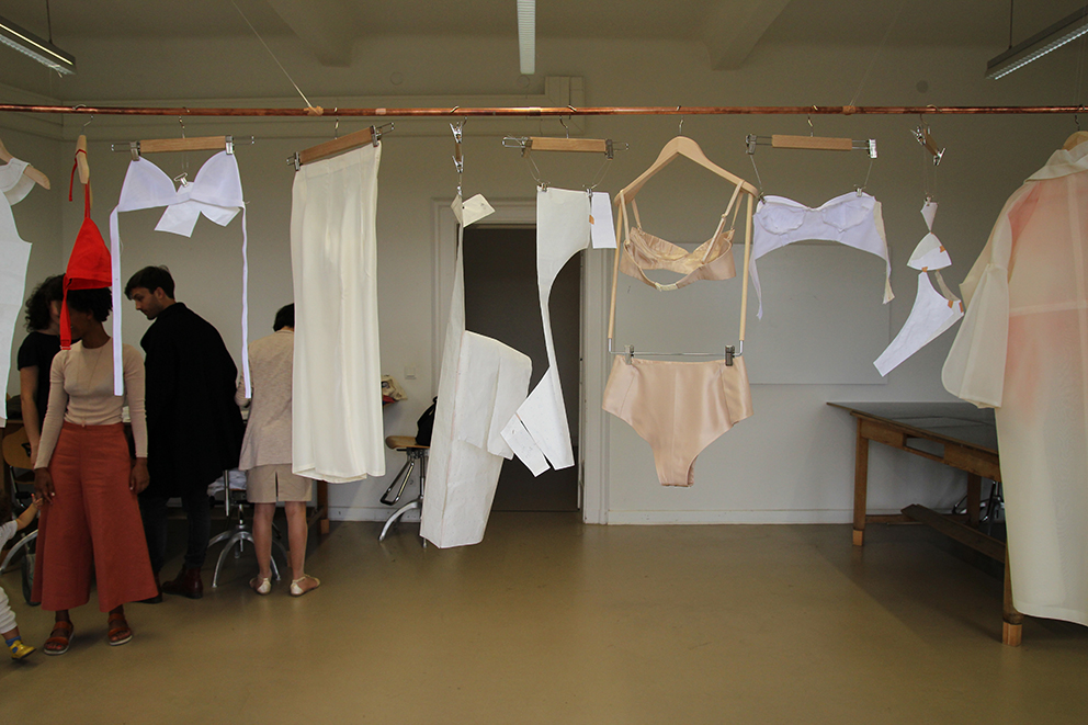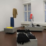Dieser Ausstellungsraum ermöglichte den Zuschauern einen persönlichen Einblick in den Gestaltungsprozess der Modedesign-Studentin Hagar Rieger während einer Kollektionsentwicklung. Skizzen, Schnittkonstruktion + Papierschnitte, Probeteile, fertige Bekleidungsstücke und fotografische Ergebnisse boten Transparenz und machten die Arbeitsweise sowie thematische Hintergründe nachvollziehbar.