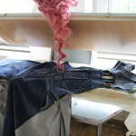 Das Projekt „Remaster“ des 4. Semesters zeigte sich im „work in progress“ – denn an einigen der von einem Klassiker inspirierten Kleidungsstücken wurde noch fleißig in der Nähwerkstatt gearbeitet.