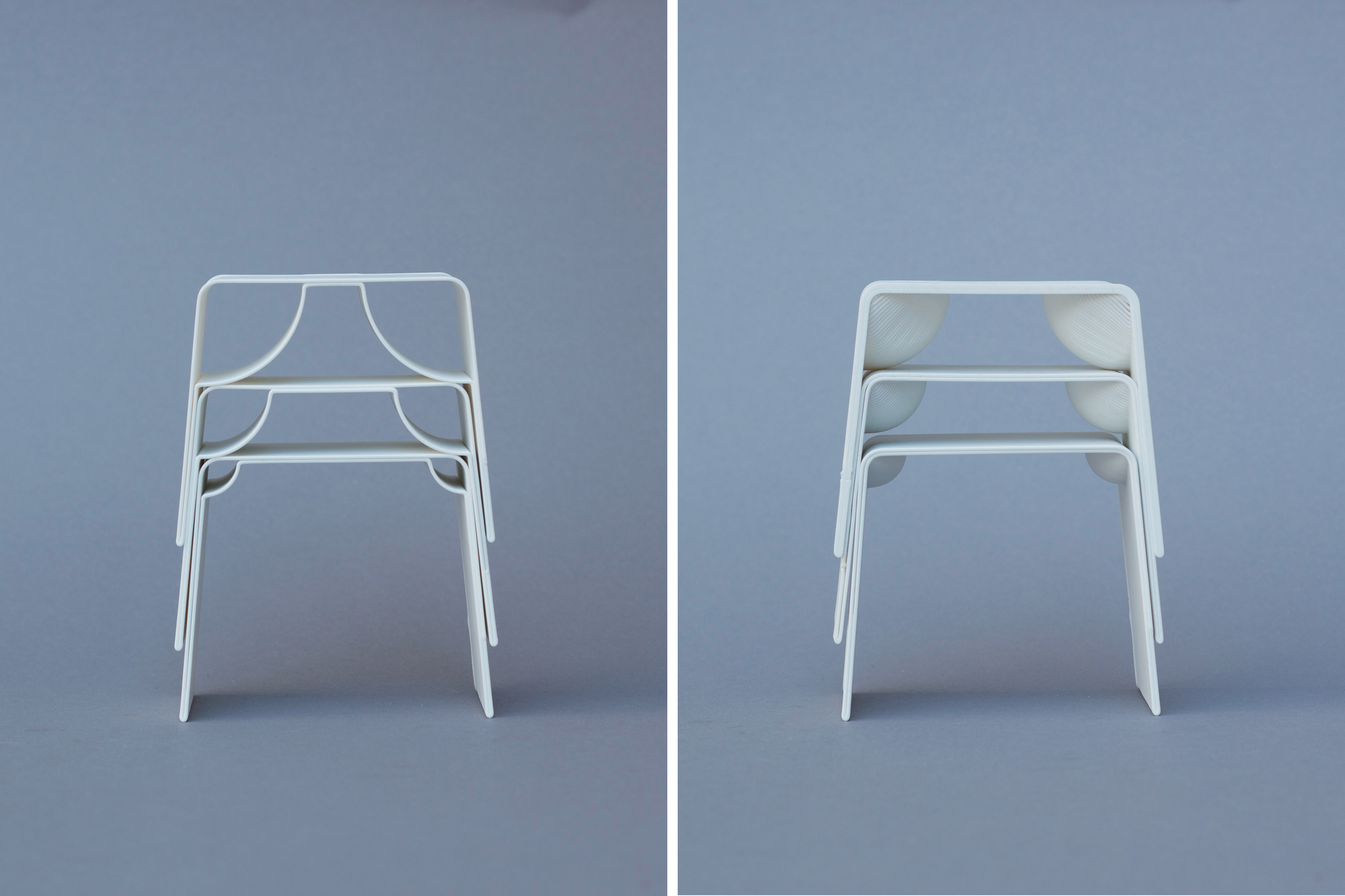 Um herauszufinden, wie sich Stabilität in gedruckte Objekte bringen lässt, werden mit einer Formstudie anhand eines simplen Hockers verschiedene geometrische Strukturen miteinander verglichen und auf Schichtadhäsion und Belastungsfähigkeit überprüft.