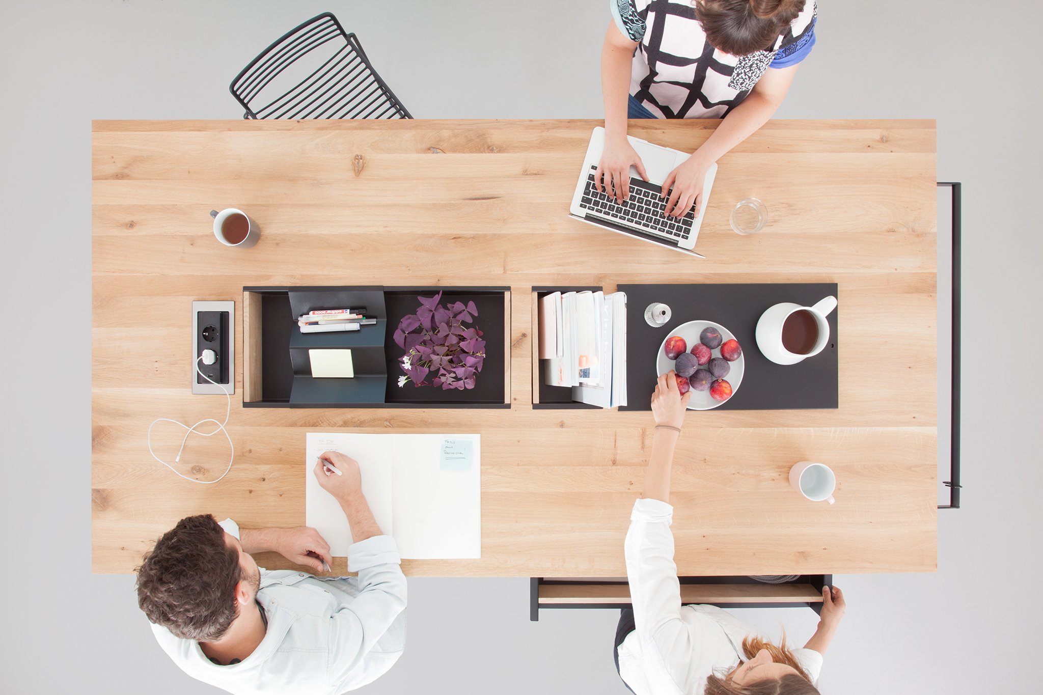 OIKOS ist das Resultat einer intensiven Recherche sozialer Aspekte und Qualitäten von Esskultur am Arbeitsplatz. Entstanden ist ein Tisch für den kreativen Arbeitsplatz, der es ermöglicht mit der gemeinsamen Mahlzeit ein Raum für informelle Kommunikation zu schaffen. Schlicht und einfach lädt OIKOS dazu ein, zusammen zu kommen um gemeinsam zu arbeiten, zu kochen und zu essen.