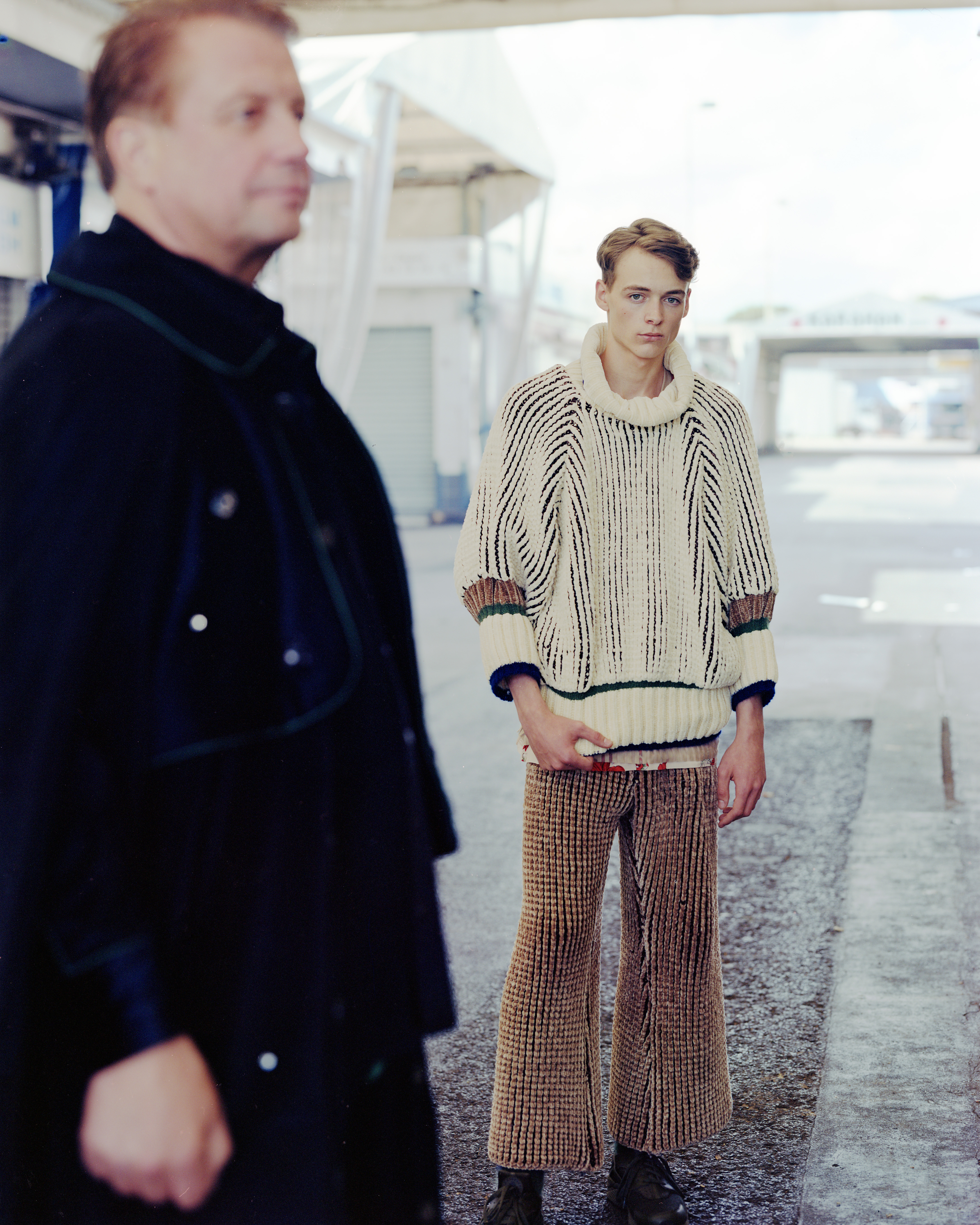 In meiner Kollektion spiele ich aus persönlicher Perspektive mit diesen Fragen. Ausgehend von verschiedenen Textilexperimenten, Körperanalysen meines männlichen Umfelds, einer Auseinandersetzung mit dem beruflichen Werdegang meines Vaters sowie den mir von ihm übertragenen Nachnamen, versuche ich mit hohem handwerklichen Anspruch, wie in der Haute Couture, neue Wege zu beschreiten.