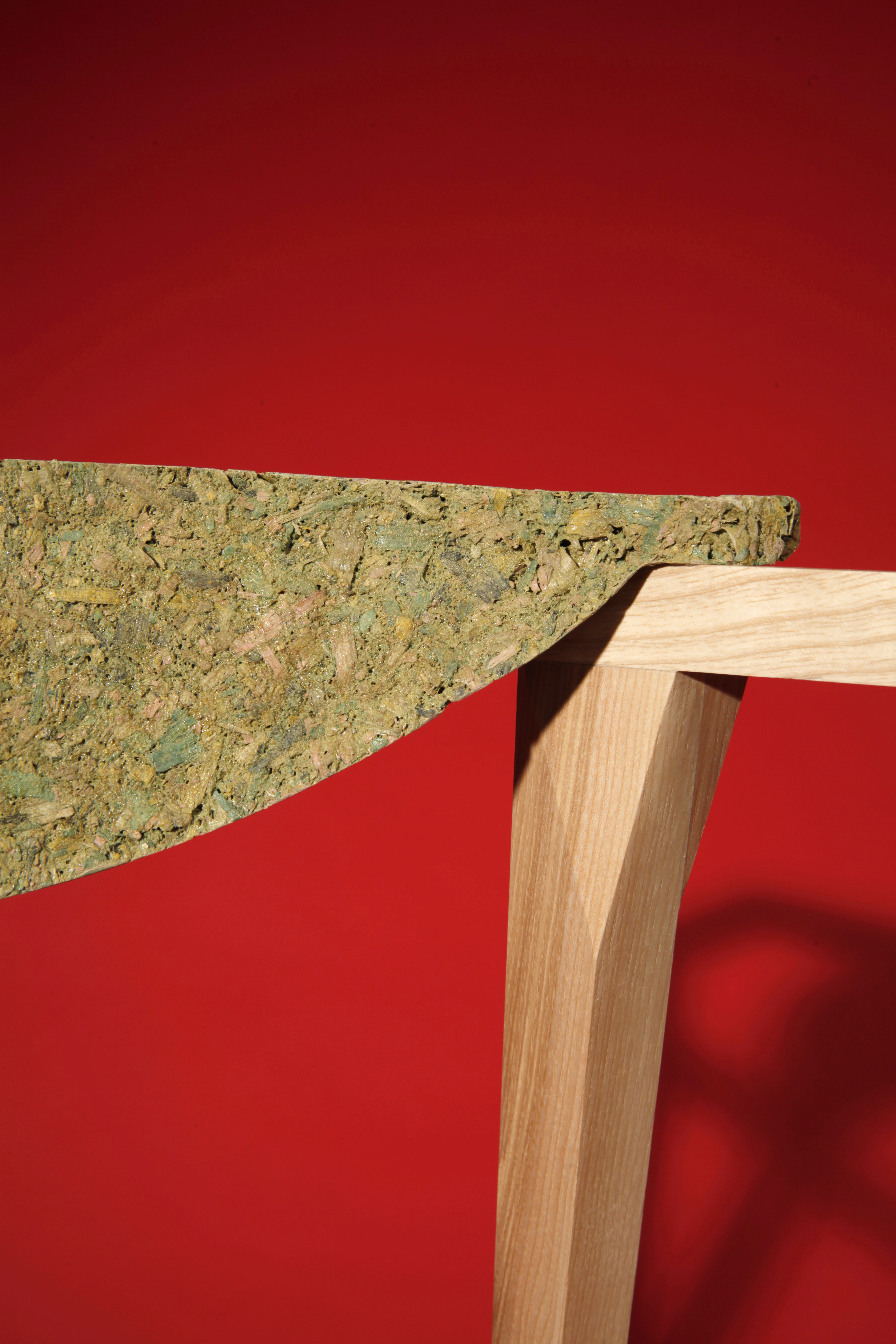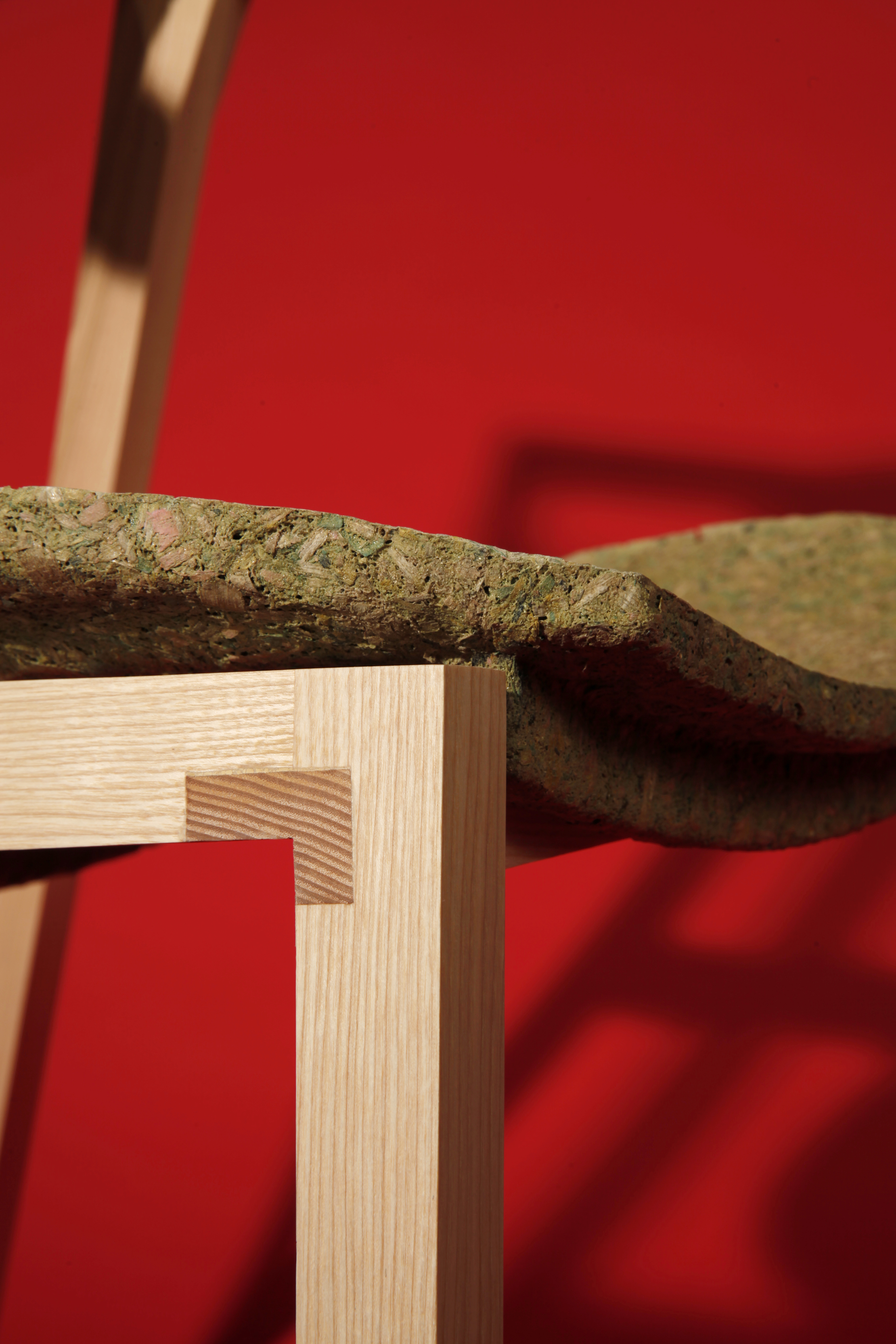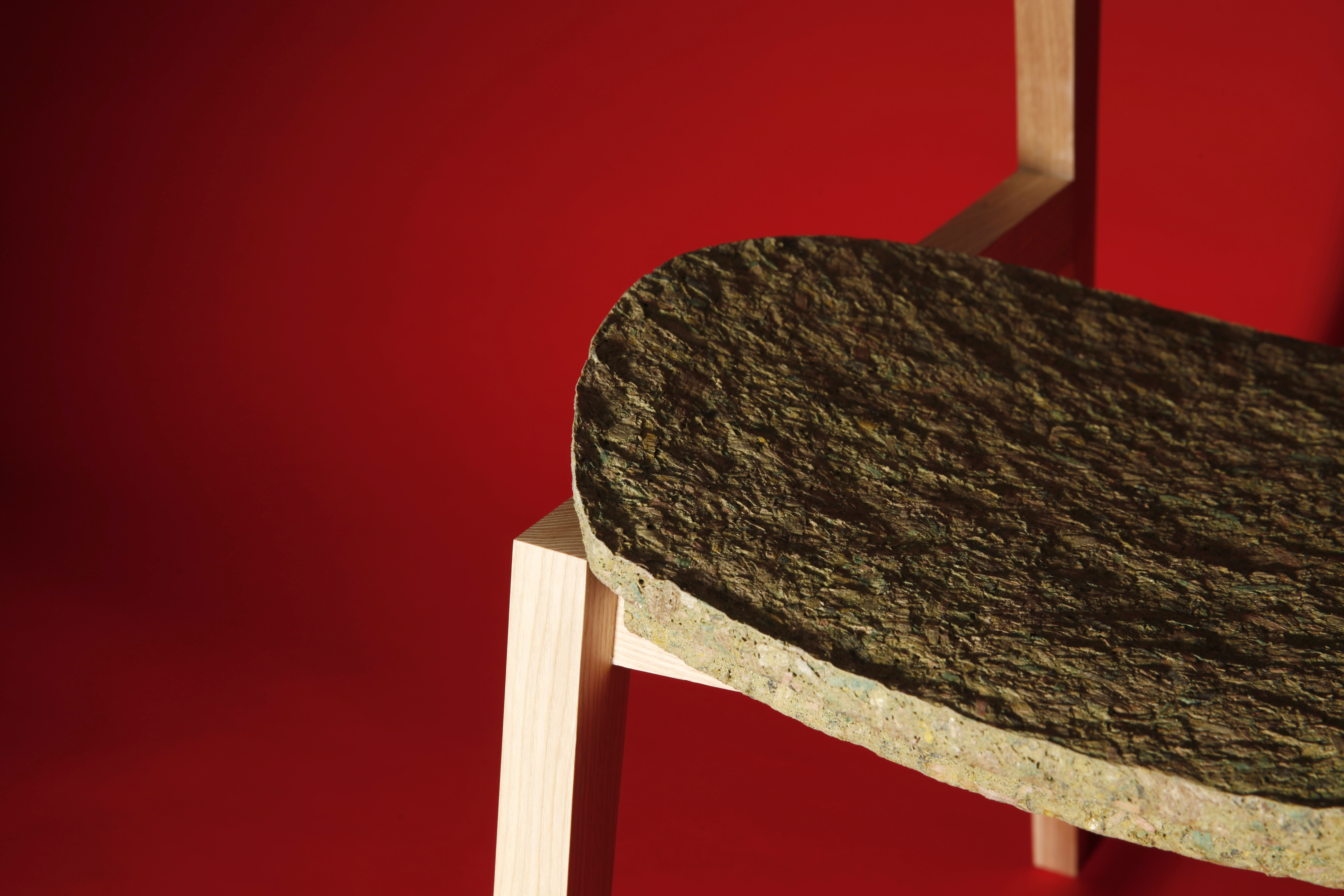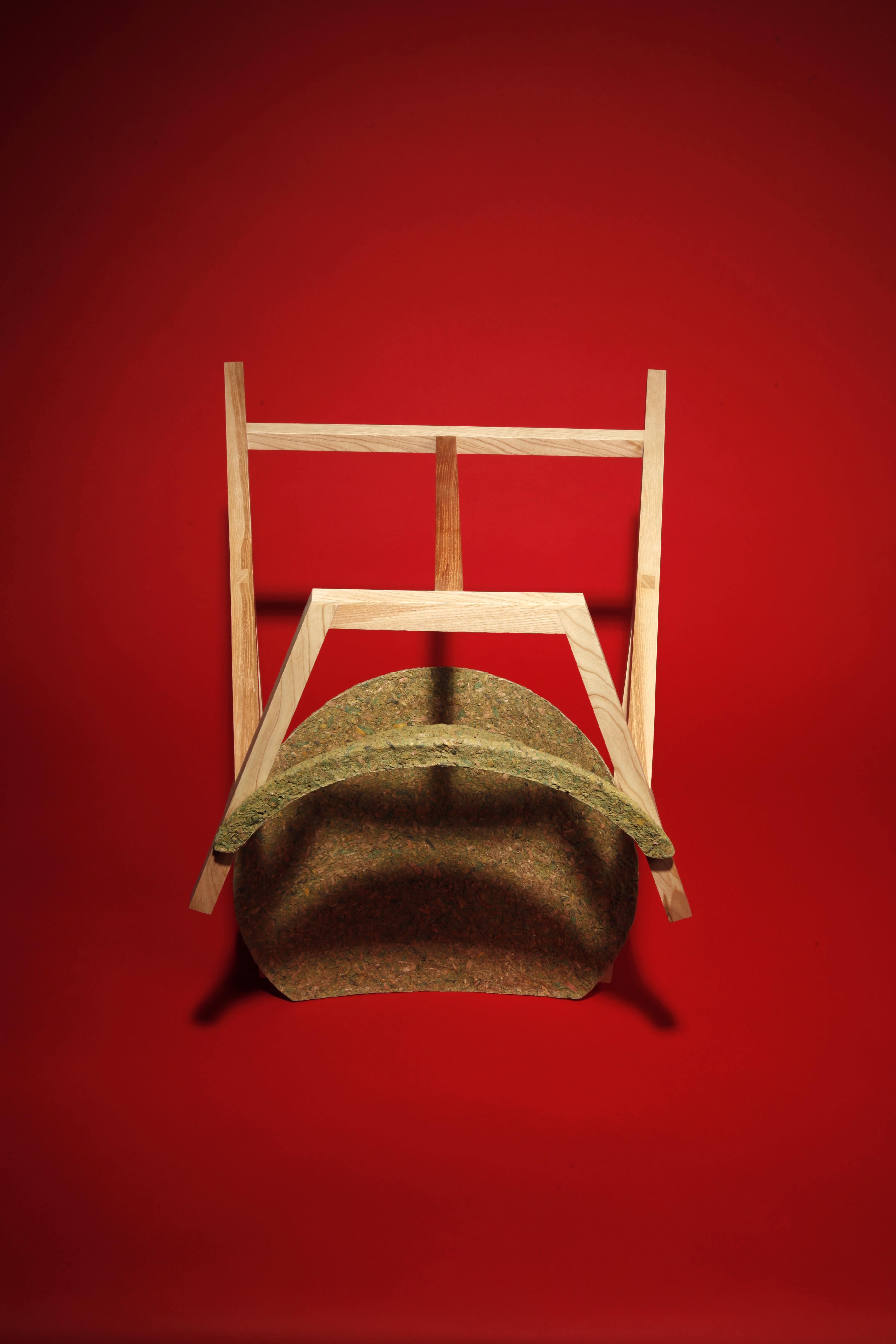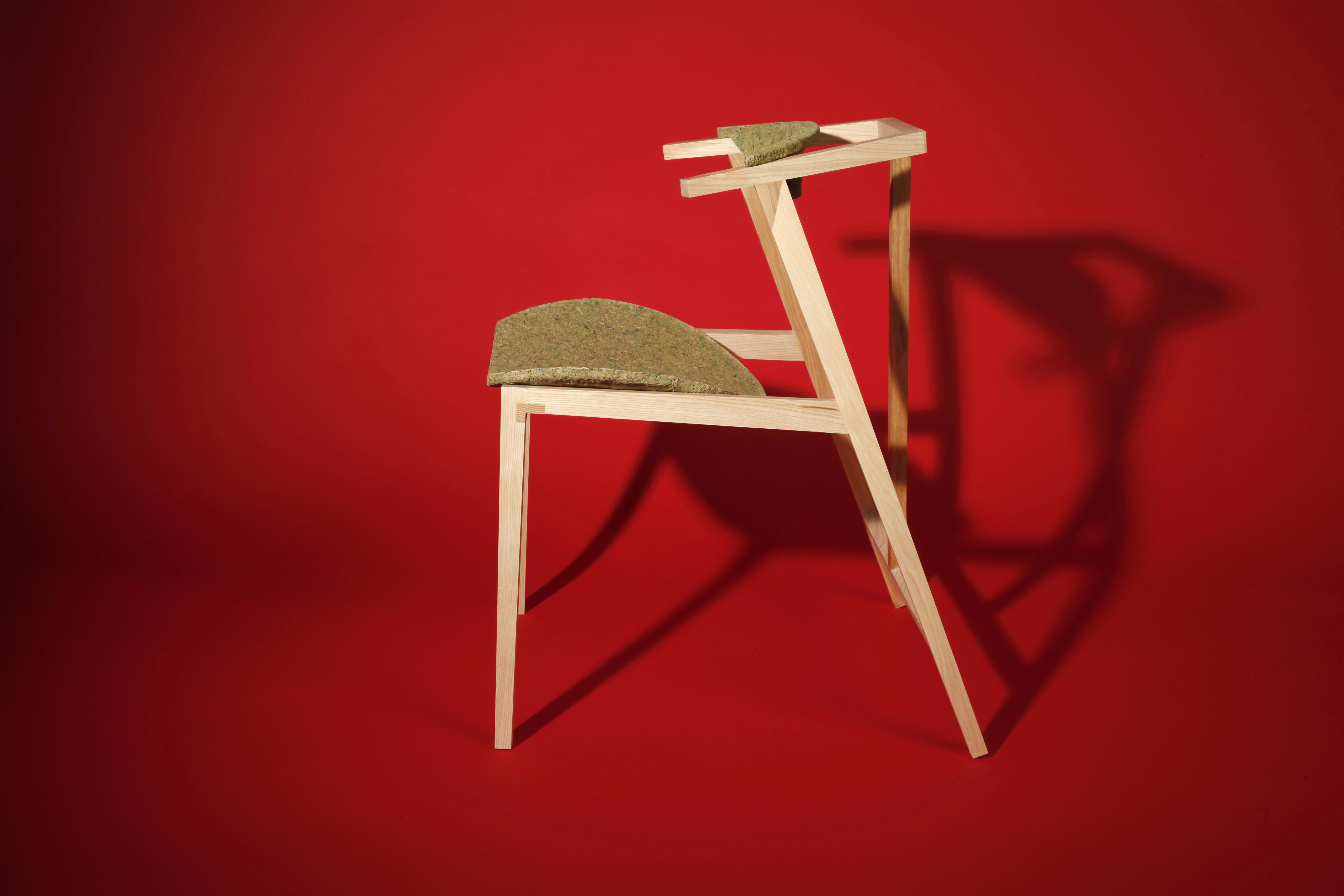 In meiner Idealvorstellung sehe ich den Stuhl als eine gezeichnete Halterung, der in seinem Gestell auf das wesentliche reduziert ist. Der geradlinige und haltgebende Aufbau der Konstruktion soll mit der Masse aufnehmenden Sitzfläche und Lehne eine architektionische Verbindung eingehen. In diesem Zusammenhang wäre es ideal wenn sich die verschiedenen Bauteile aus dem gleichen Ba- sismaterial bilden lassen. Als maßgebenden und all umfassenden Bestandteil der Vorstellung soll das benötigte Material restlos verwertet werden und den Stuhl zu einen langlebigen und ökologisch verträglich Gegenstand werden lassen. Diese drei Bereiche Nachhaltigkeit, Raumskizze und Körper- halter bilden den Ausgangspunkt meiner Abschlussarbeit.