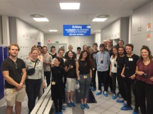 Gruppenfoto und Überprüfung der Arbeitssicherheit vor dem Betreten der Produktionshallen