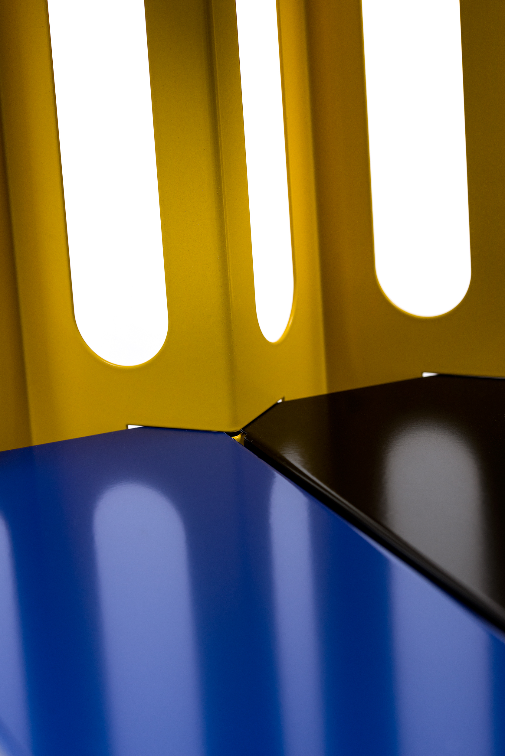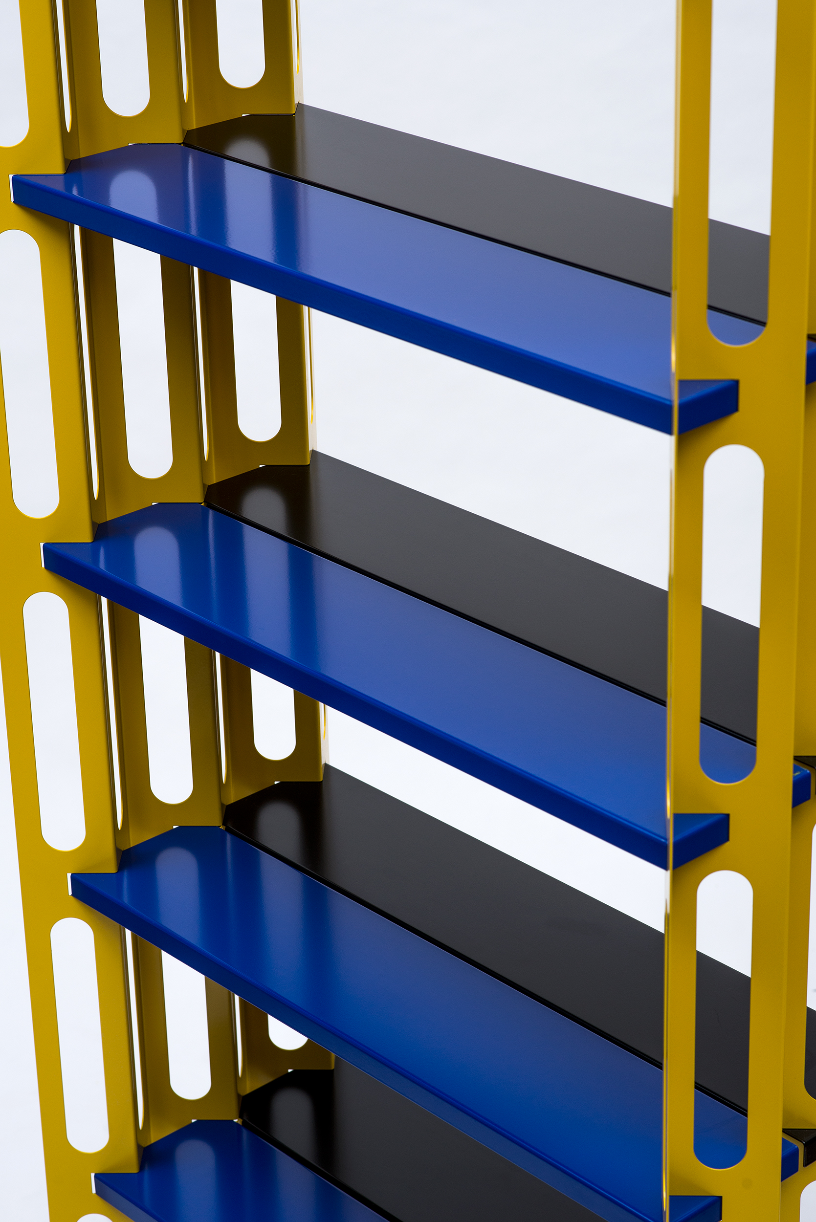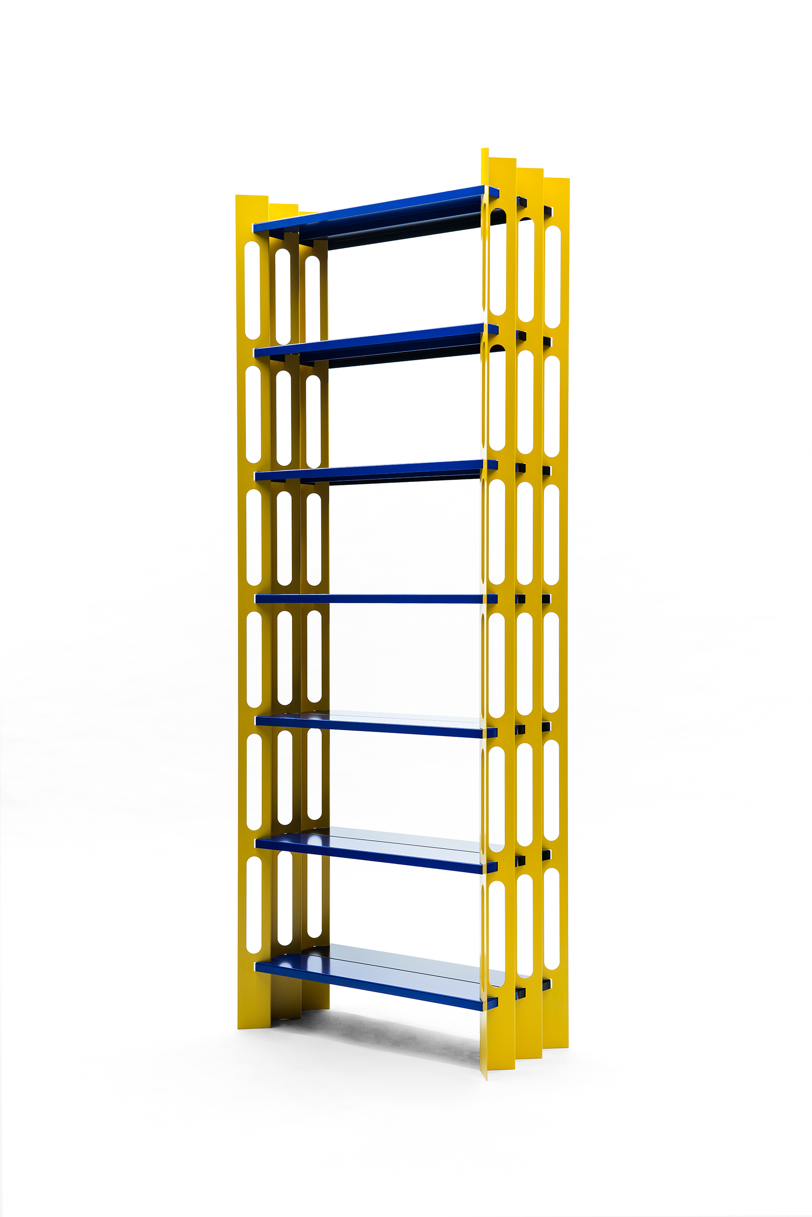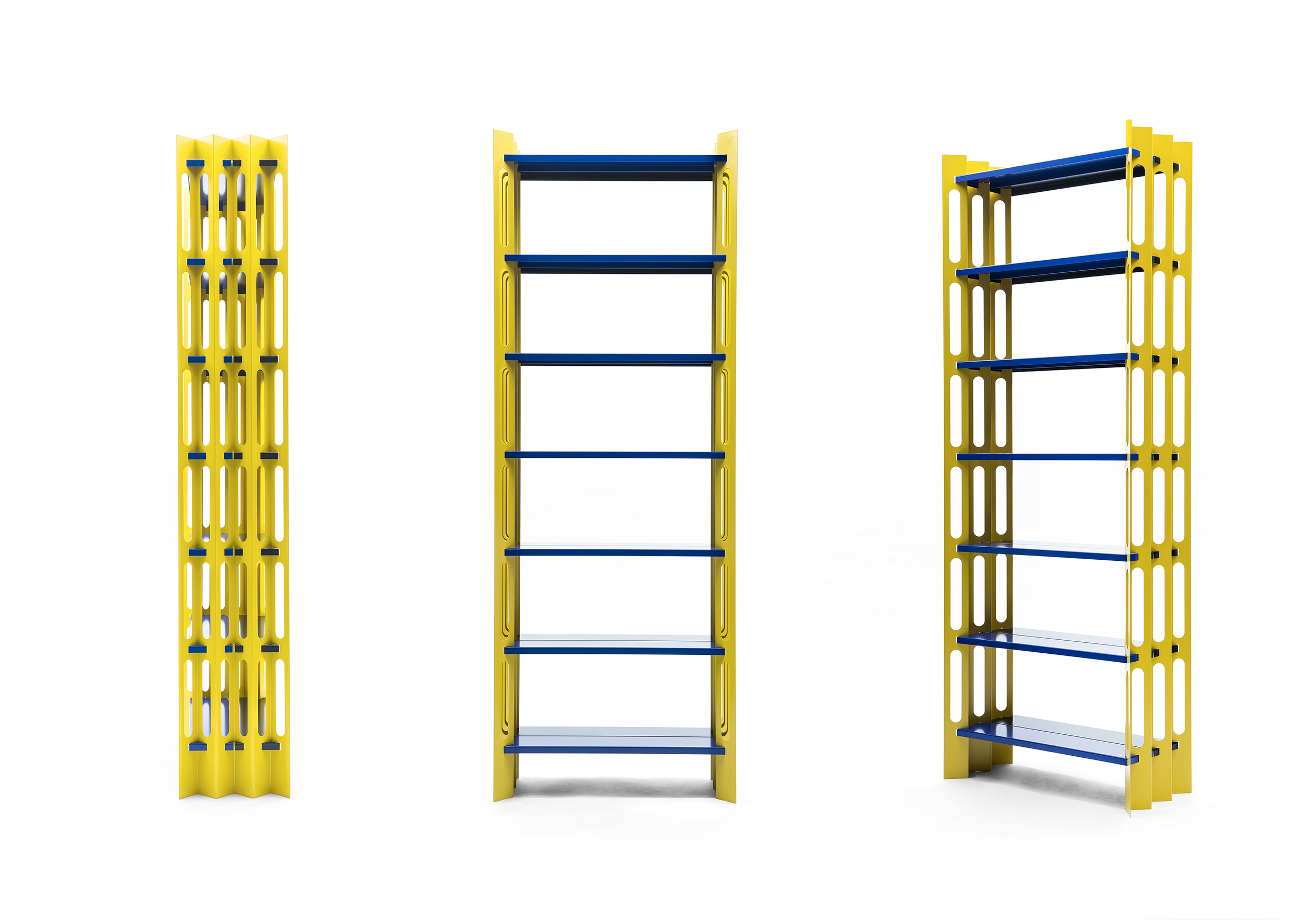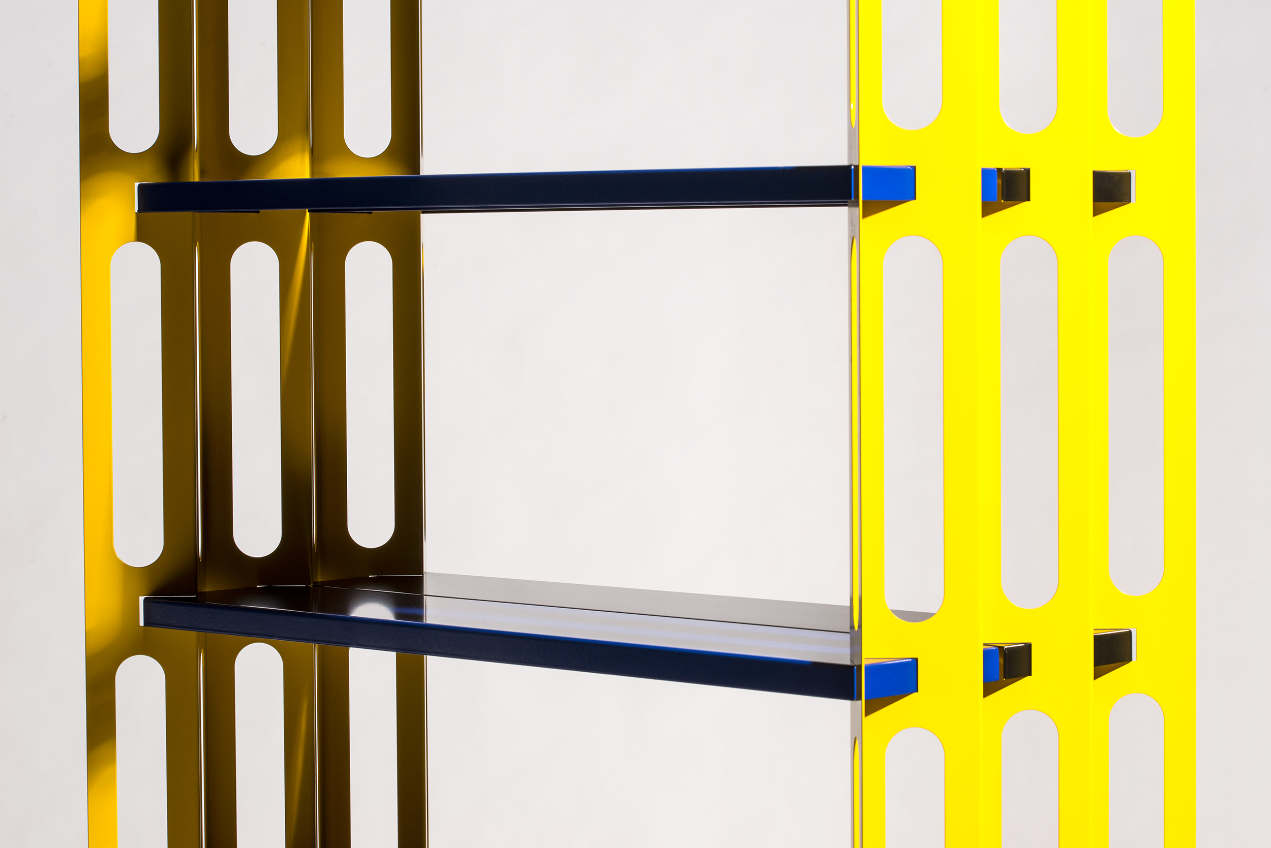 SSR–1 ist das Kürzel für das erste von mir entworfene Regal: Simon Stanislawski Regal 1. Es entstand aus meinem Interesse an großindustriellen Materialien und Verarbeitungstechniken unter dem Einsatz von computerunterstütztem Entwerfen. Meine Formsprache entstand insbesondere durch die Beobachtung von Herstellungsverfahren und Entwicklungsprozessen von industriellen Halbfabrikaten. Die für meinen Prototypen herausgearbeitete Farbwelt bezieht sich auf den Umgang mit Signalfarben im Baubereich. In meiner Tätigkeit als selbständiger Designer arbeite ich auftragsbezogen und war seit Eröffnung meiner Werkstatt hauptsächlich im Innenausbau tätig. Ich habe in der Zeit die Erfahrung gemacht, dass Stauraum für Privatkunden sowie für Kunden im Einzelhandel und in der Gastronomie immer essenziell ist. Um zukünftigen Kundenwünschen entsprechen zu können, liegt die Entscheidung für mich nahe, meinen Produktkatalog mit einem Regal zu eröffnen. Meine Überzeugung ist es, dass Design für möglichst viele Menschen zugänglich sein muss. Design darf nicht nur für die Luxusnische erschwinglich sein. Wer als Jungdesigner ohne finanzielle Mittel versucht ein Möbel zu gestalten, das den Weg in viele Haushalte finden soll, muss von Anfang an auf vieles achten. Gemeint damit sind sämtliche Prozesse und Einzelkomponenten für den Entwurf, über die Produktion, bis hin zum Vertrieb.