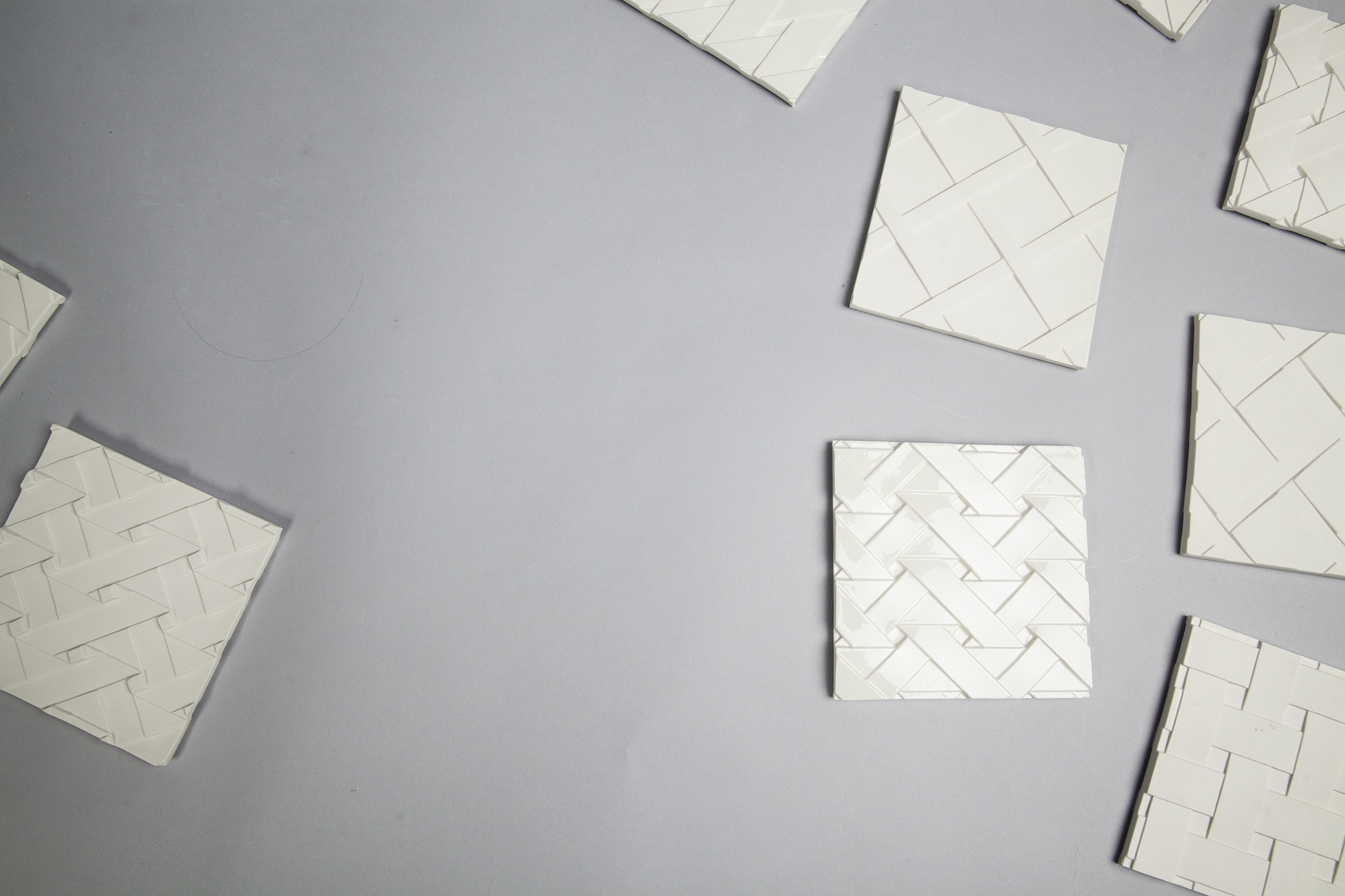 Ich wollte traditionelle Handwerke neu interpretieren und abstrahiert darstellen. Über zahlreiche Experimente mit verschiedensten Materialien kam ich schließlich dazu gewebte Furnierstreifen in Ton abzudrücken. Diese abstrakte Darstellung eines einfachen Musters gefiel mir so gut, dass ich beschloss Fliesen daraus zu entwickeln. Den Strukturen wird durch die flache Anbringung an der Wand am besten Raum gegeben. Die Umsetzung, aber auch das Konzept des Projekts wurde immer komplexer, daher der Name KUTATA(suaheli für komplex/verwickeln).