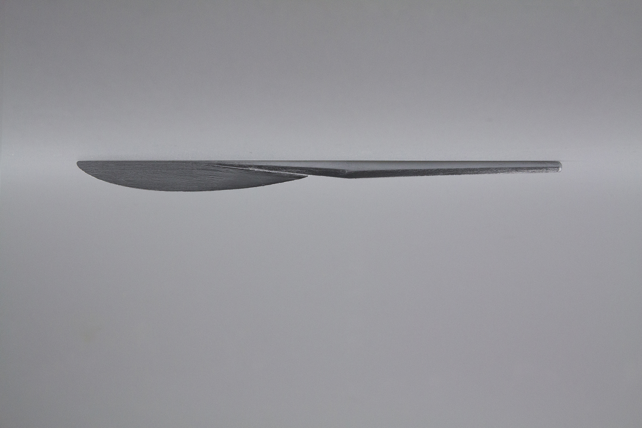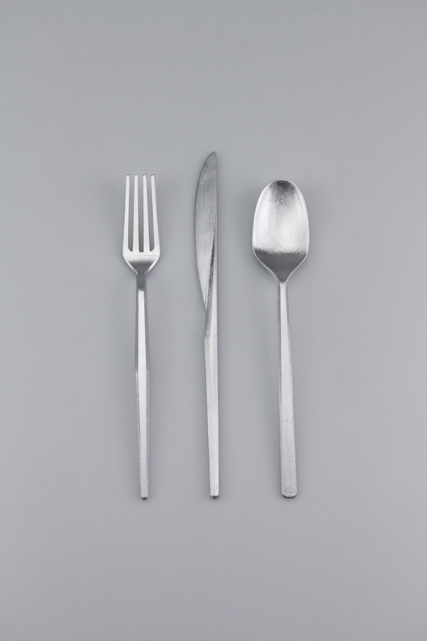 Bei dem finalen Entwurf bleibt bei dem Griff der Gabel der regelmäßige sechseckige Querschnitt bestehen, da die Gabel am beweglichsten in der Hand liegen muss. Der Griff des Messers wird noch ein Stück über die Klinge geführt, so dass man eine breitere Auflagefläche hat, um besser Druck beim Schneiden ausüben zu können. Des Weiteren ist der Griff seitlich gestaucht, um möglichst wenig Spiel in der Hand zu haben und so die Klinge besser führen zu können. Der Griff des Löffels ist wiederum gegen das Ende hin abgeflacht und vereinfacht es so den Löffel waagerecht zu halten.