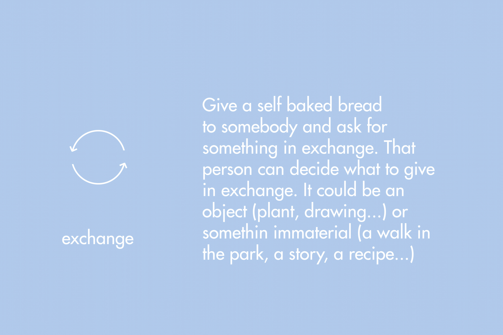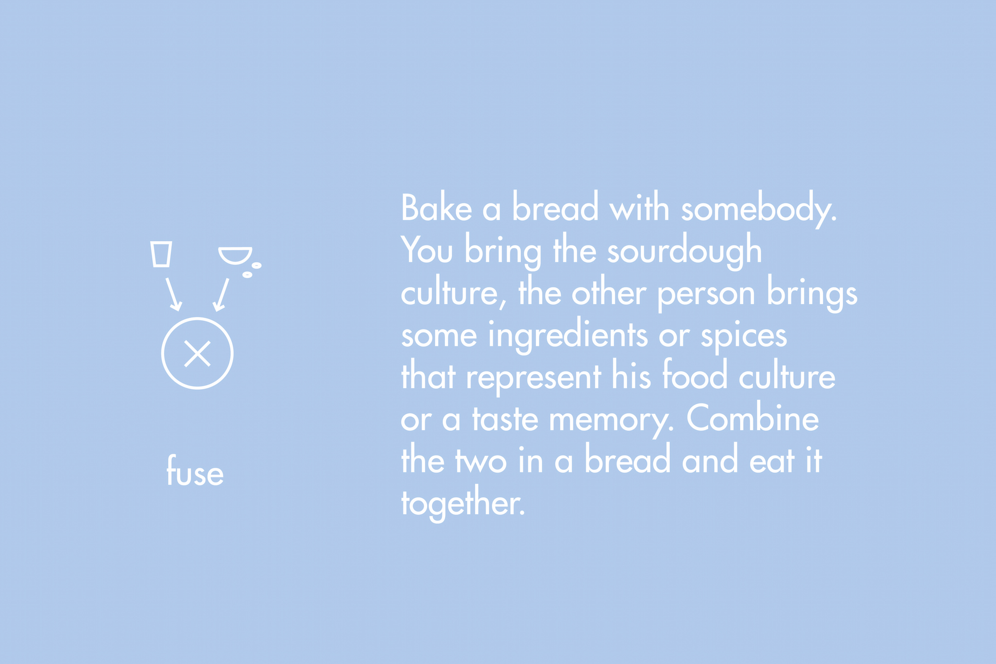 There wil be playful “challenges” that inspire sharing and baking sourdough bread together, e.g.: Exchange, Spread, Share and Fuse.