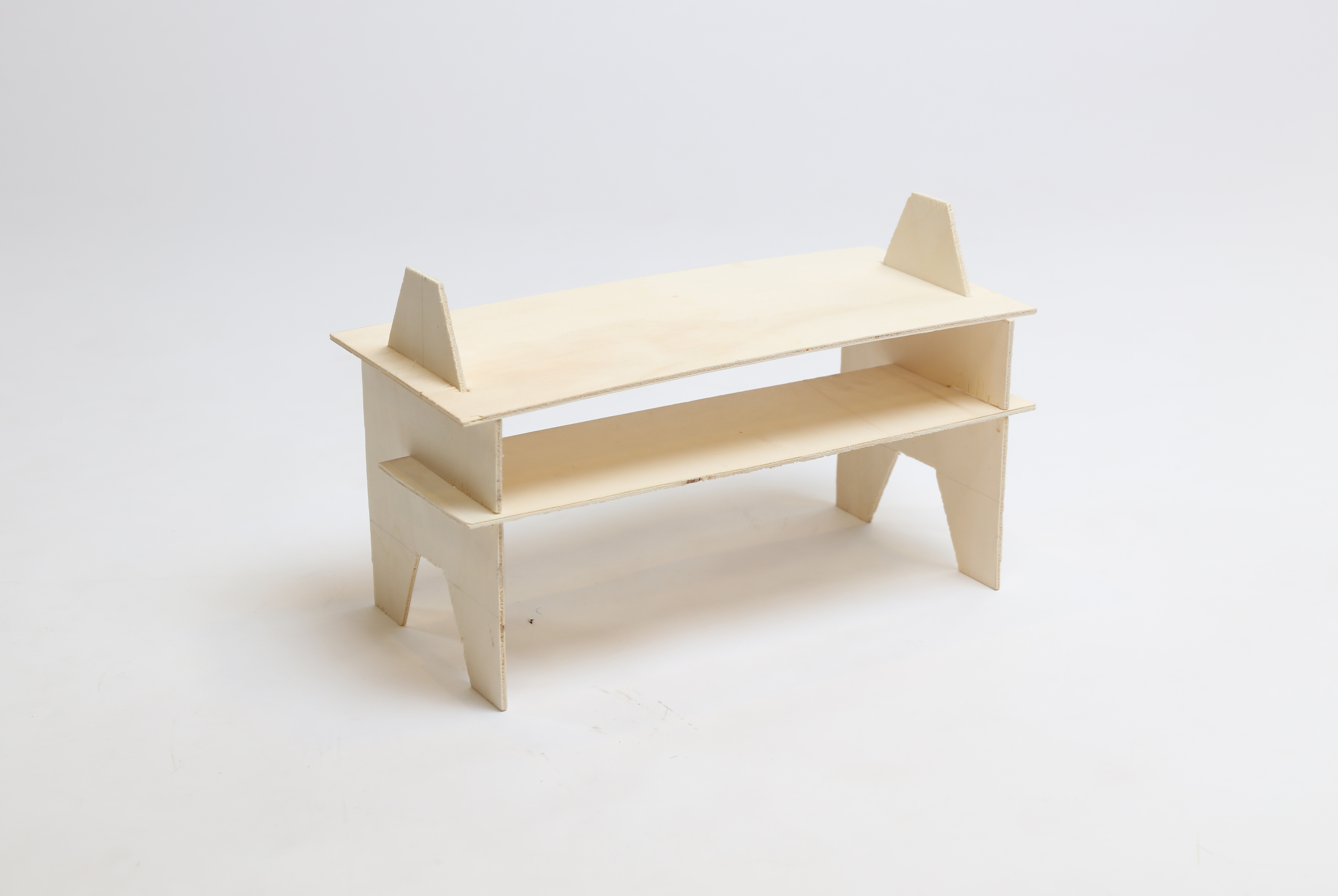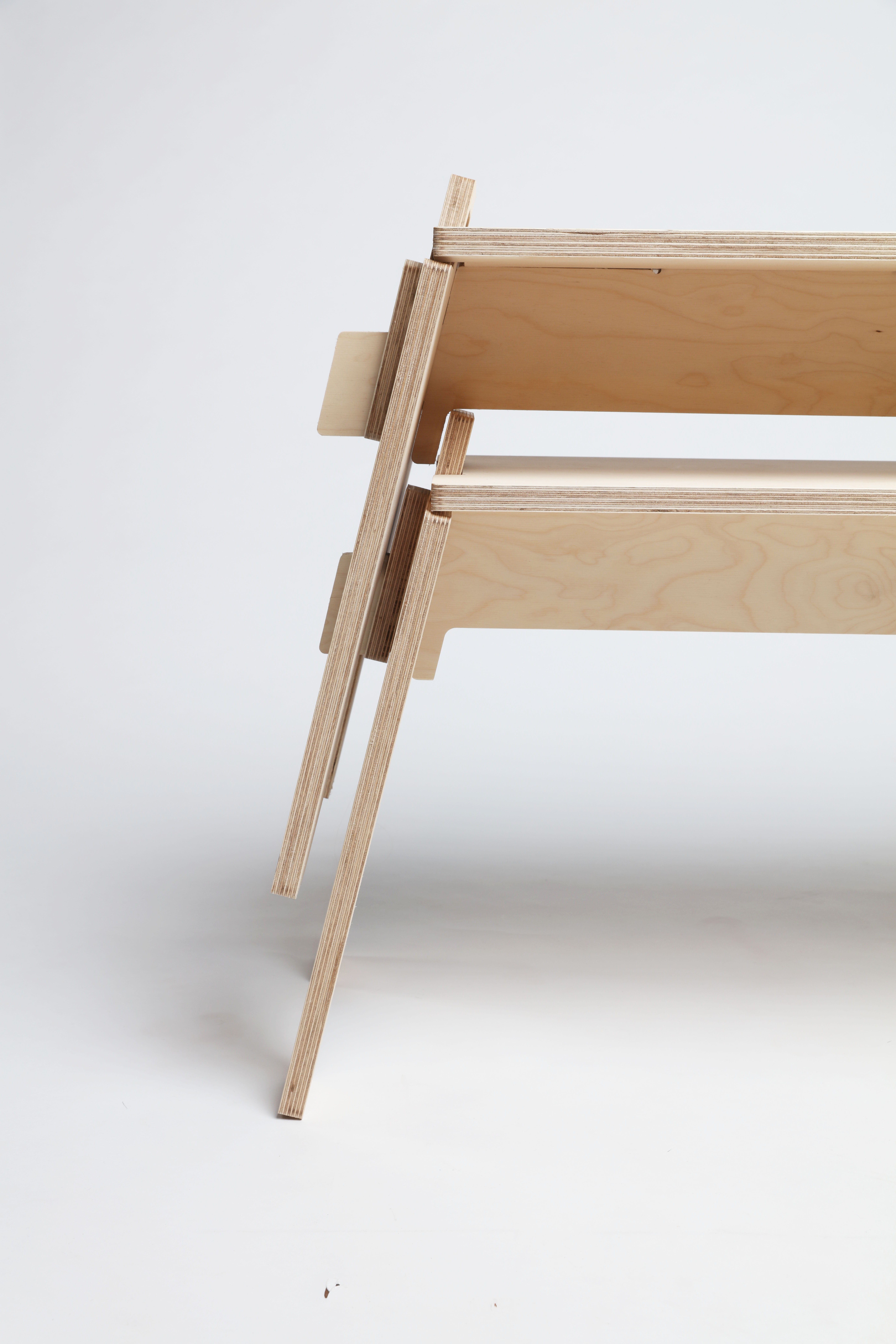 Maggie is a stackable bench to sit on in a cosy way with two persons. Her focus lies on a sustainable plug in system without Andy nails, dowels, screws or glue.