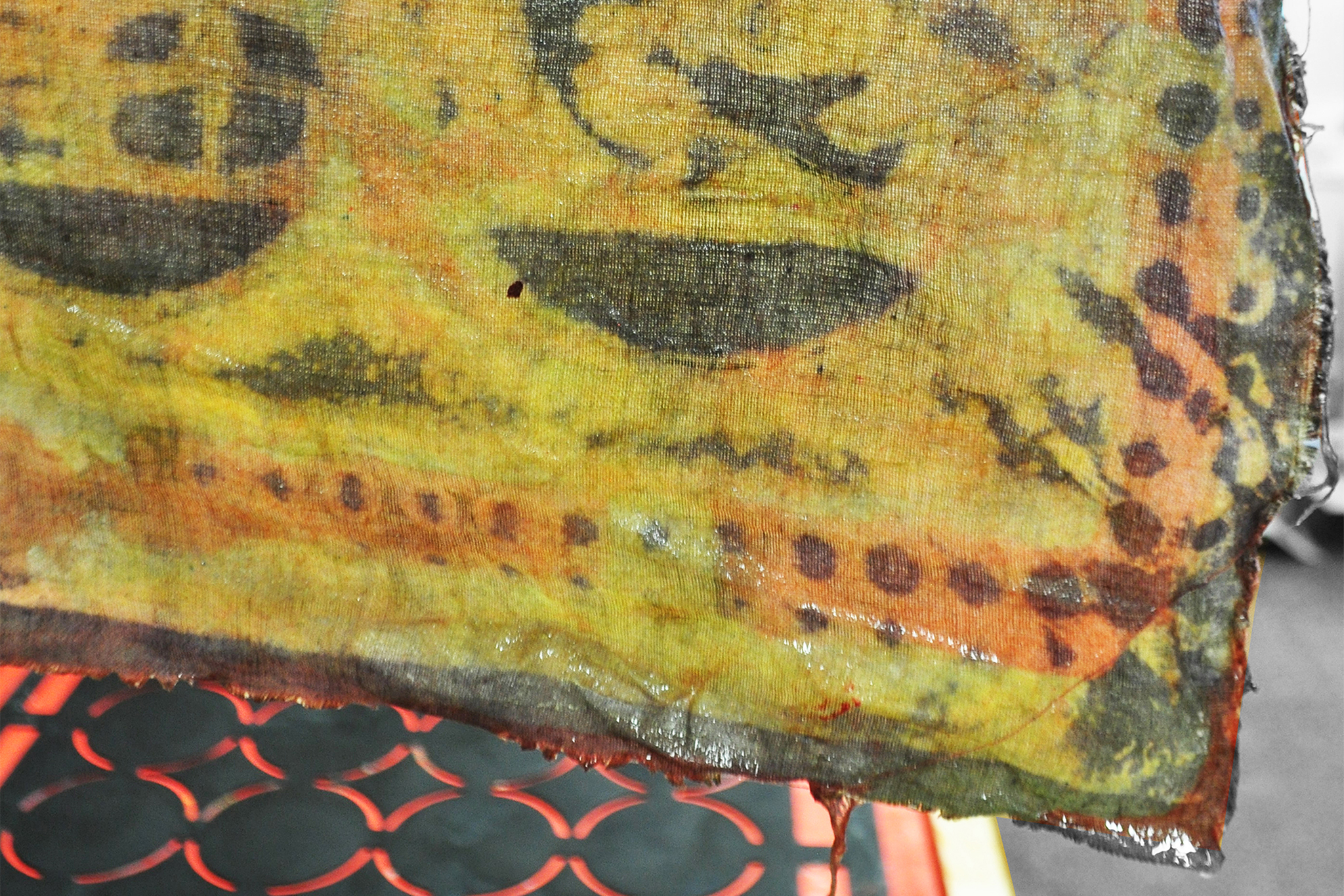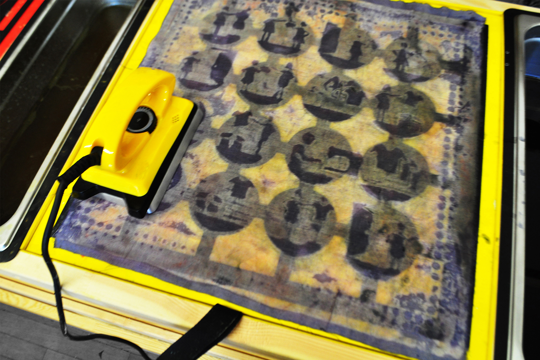 Authentic Fashion Products!, zugleich Installation und Workshop, beschäftigt sich mit den wiederkehrenden Problemen einer sich verändernden Industrie. Es wird ein Ort geboten für eine kritische Auseinandersetzung mit ethischer Produktion, Schnellebigkeit, dem Wert von Textilien und dem Spannungsfeld zwischen Original und Aneignung. Als interaktive Produktionsstätte lässt die Arbeit Besucher an der Textilproduktion mitwirken. Hier werden Wachsdruck-Bandanas hergestellt, illustriert mit Geschichten aus der Industrie. Der langsame Prozess verlangt nach Aufmerksamkeit und bietet Raum für Diskussion. Durch die performative Handlung der Besucher werden Perspektivwechsel sowie eine erhöhte dekoloniale Sensibilität angestrebt.
