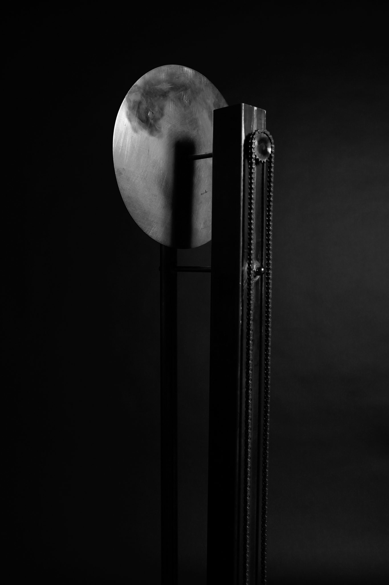 Licht beeinflusst unser gesamtes Sein, genauso wie die Zeit und die mit ihr im Einklang stehende Bewegung. Eine Komposition von ungreifbaren Elementen. Die Taktung des Unsichtbaren, sichtbar machen. Between on and off. Die passive Lichtsituation, verdeutlicht das Verstreichen der Zeit. In Form eines Raumpendels.