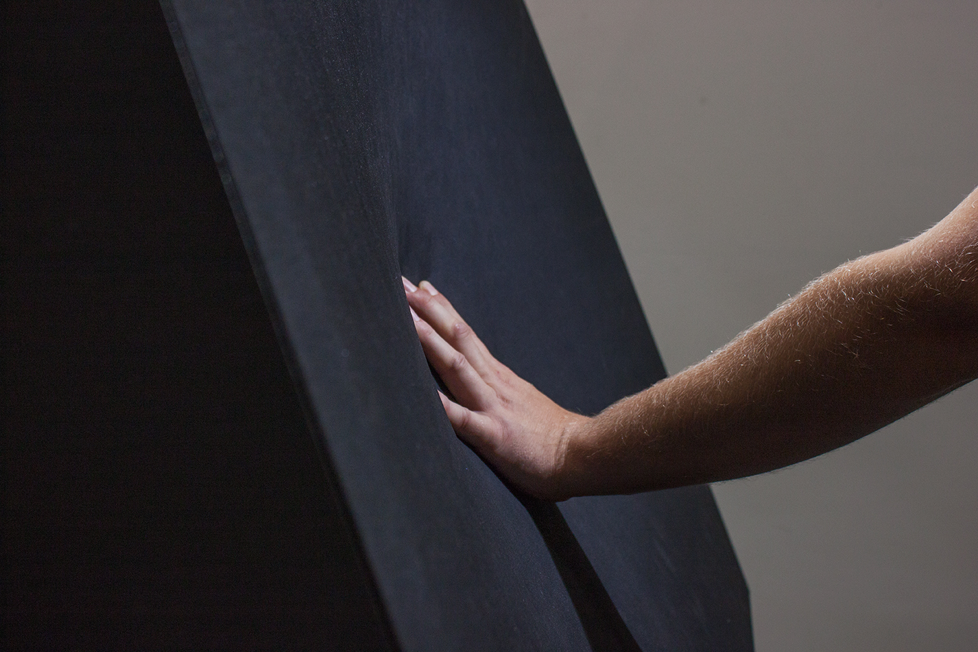 „Elementarteilchen“ spiegelt die Verbindung von Licht und Körper wider. Durch Berührung der mit Stoff bespannten Fläche werden die Lichtreflexionen beeinflusst, geraten in Bewegung und verändern ihr Verhalten im Raum. Der Bezug von Körper zu Licht wird veranschaulicht, die Wahrnehmung intensiviert.