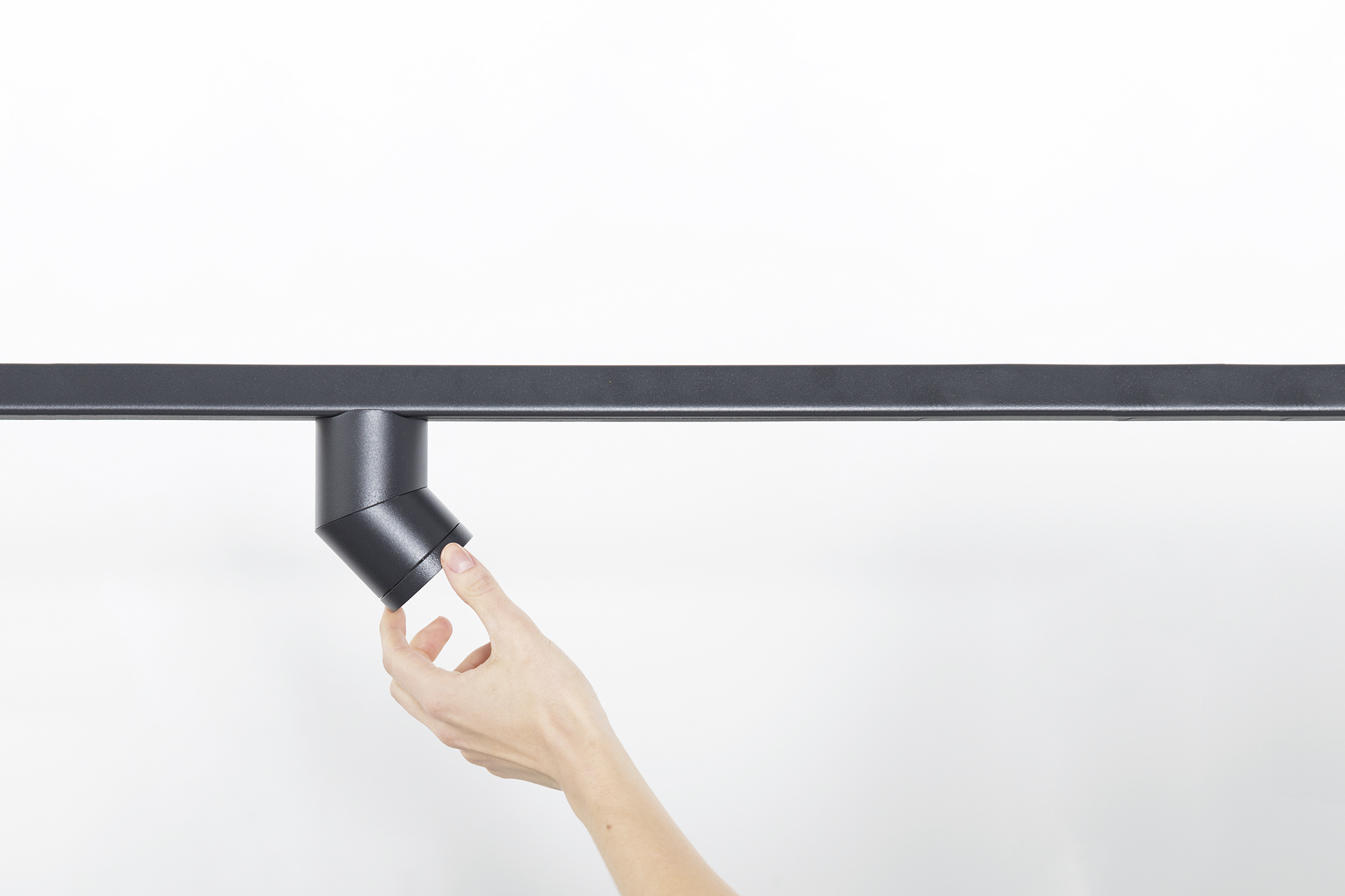 Ein klemmbares Profil sorgt für die optimale Raumbeleuchtung und ersetzt herkömmliche Deckenbeleuchtung. Zusätzlich können Lichtmodule zur individuellen Arbeitsplatzbeleuchtung eingesetzt werden. Das Lichtprofil wird über den Standfuß gesteuert. Dieser dient gleichzeitig als Ladestation für elektronische Geräte. Die Lichtmodule werden kabellos über induktive Energieübertragung mit Strom versorgt und können frei innerhalb des Profiles platziert werden. Bei Bedarf sorgen Sichtschutzpaneele für die entsprechende Privatsphäre.