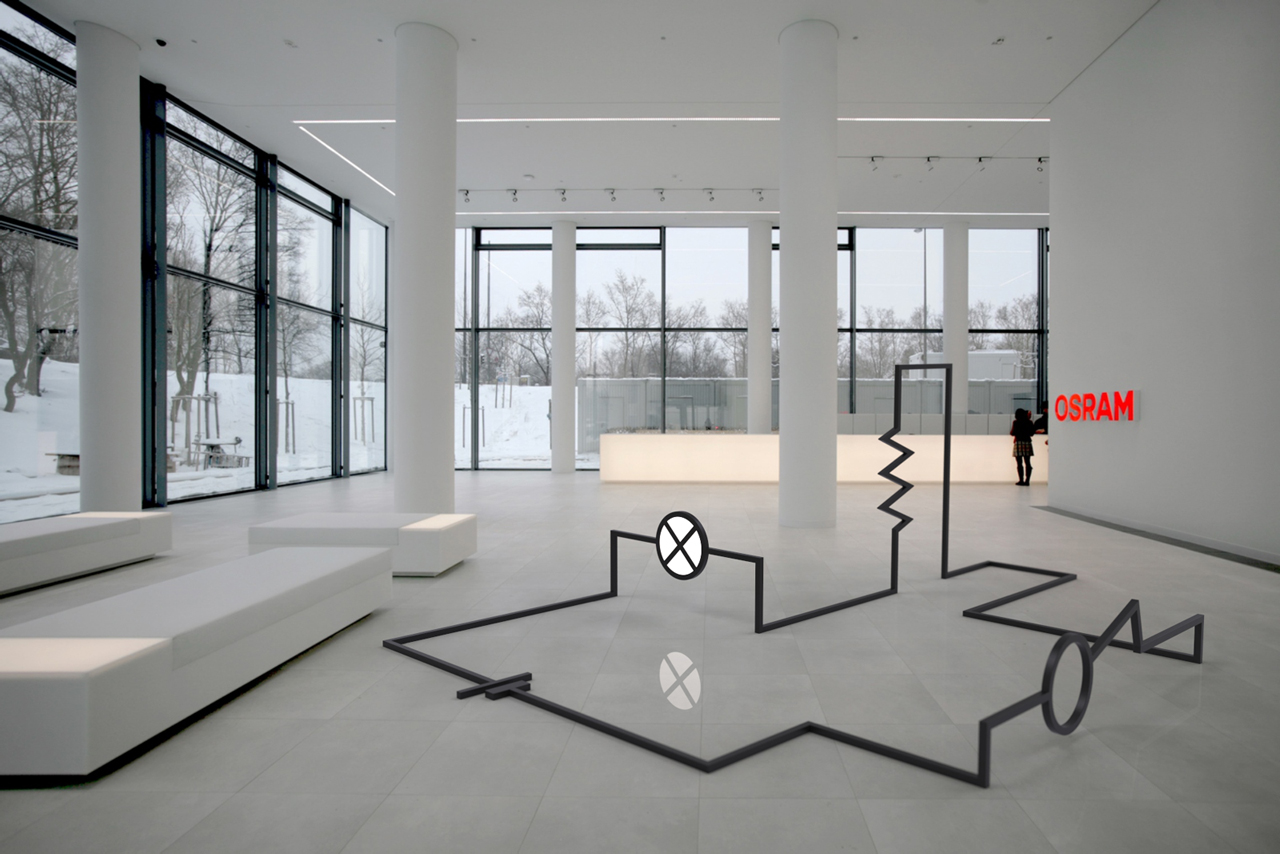Es entsteht somit eine Skulptur, die Elektrizität gewissermaßen greifbar macht. Die modulare, nach dem Baukasten-System gestaltete Skulptur bedient sich an den stilistischen Elementen eines elektrischen Schaltplans und überträgt diesen von der zweidimensionalen Zeichnung in den dreidimensionalen Raum. Die zugehörige Abbildung zeigt lediglich eine mögliche Variante; die Gesamtgröße, sowie die Menge an Schaltsymbolen können nach Belieben an die jeweiligen räumlichen Gegebenheiten angepasst werden.