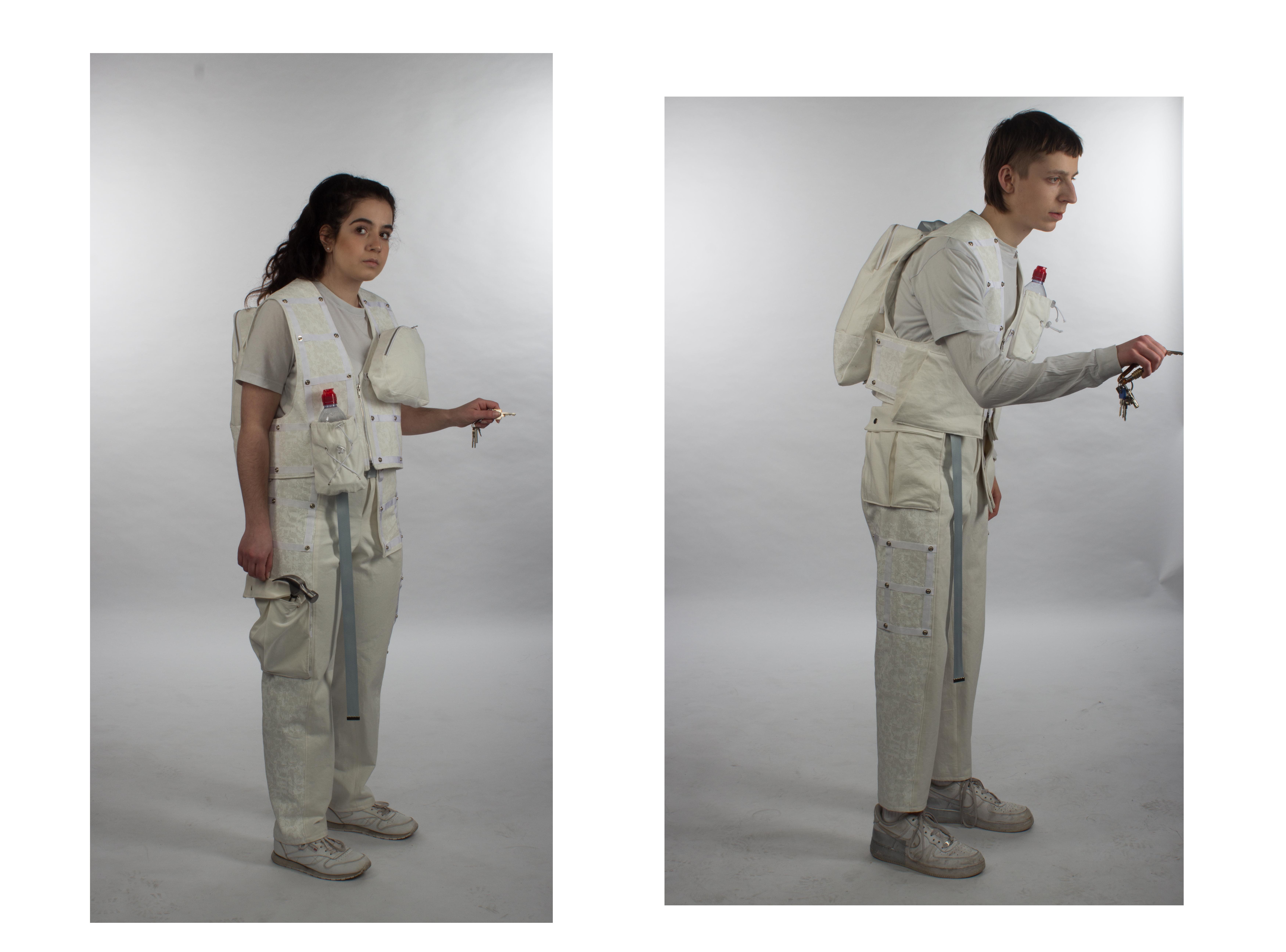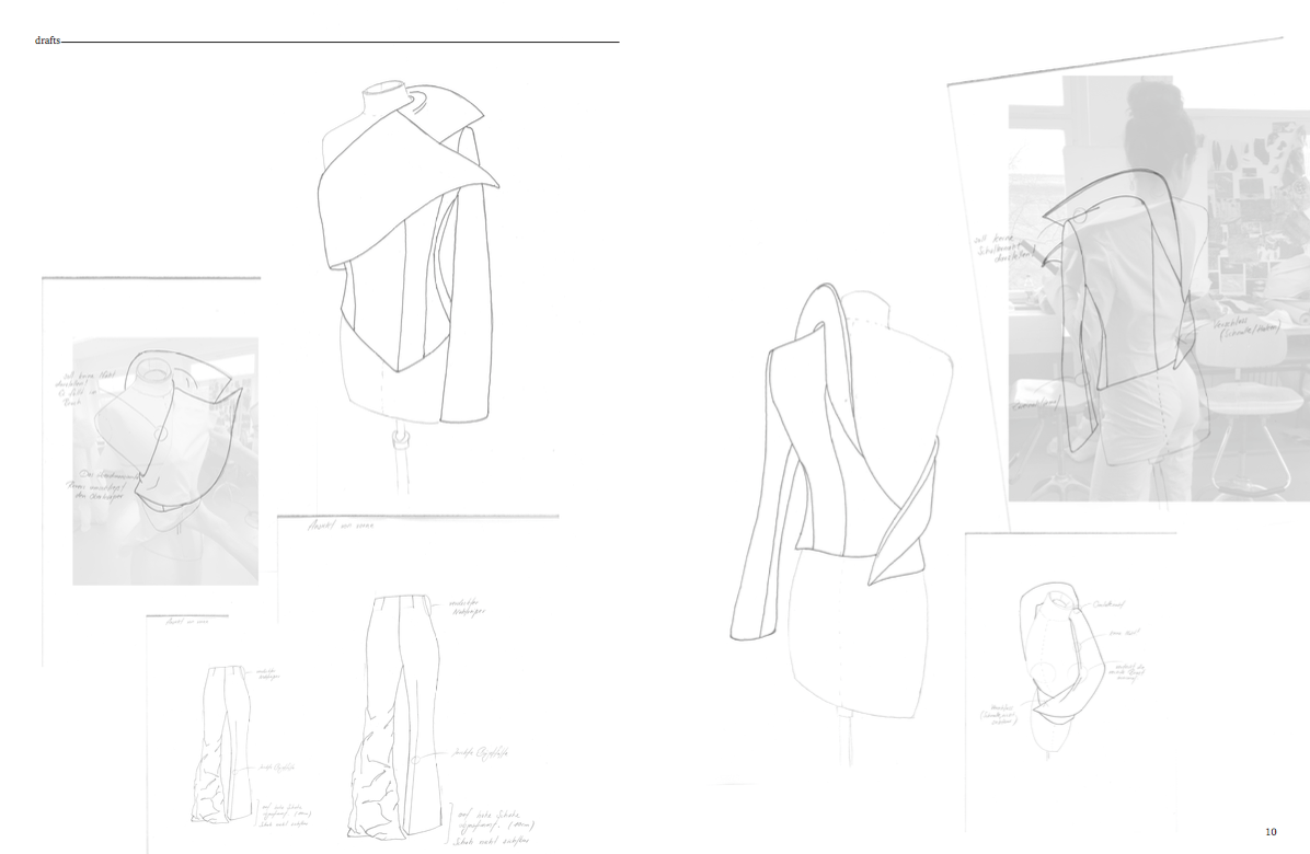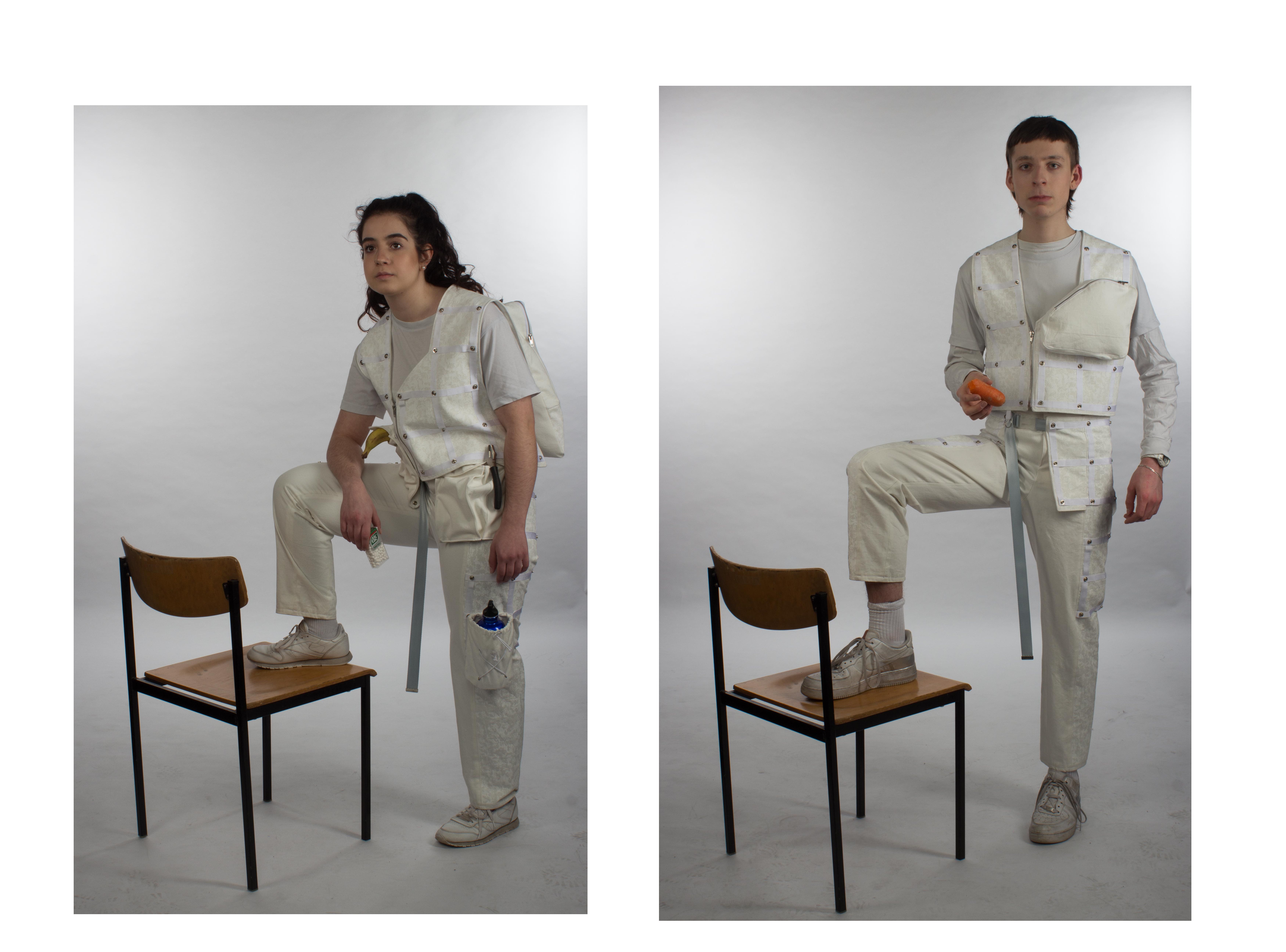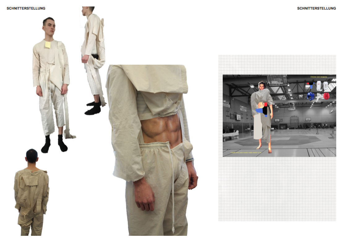 Der Zweiteiler, das Duett der Kleidungsstücke: Durch das Zusammenspiel ergänzt sich das Paar, definiert Eigenschaften einander, es reibt sich, kann sich auch entzweien, lässt dem Gegenspieler einen eigenen Auftritt, und findet immer wieder zueinander. Vom Anzug zum Twinset wird die Bandbreite der Partnerschaft recherchiert, die Stärke des Duos analysiert und für den eigenen Entwurf eingesetzt.