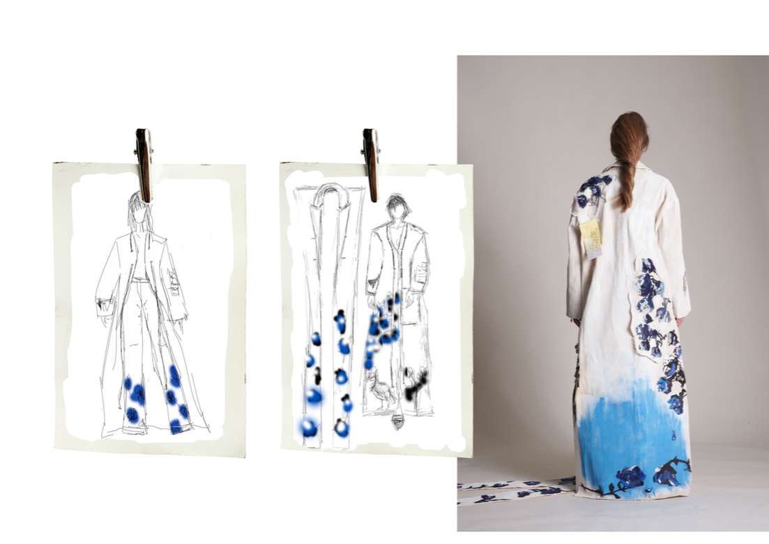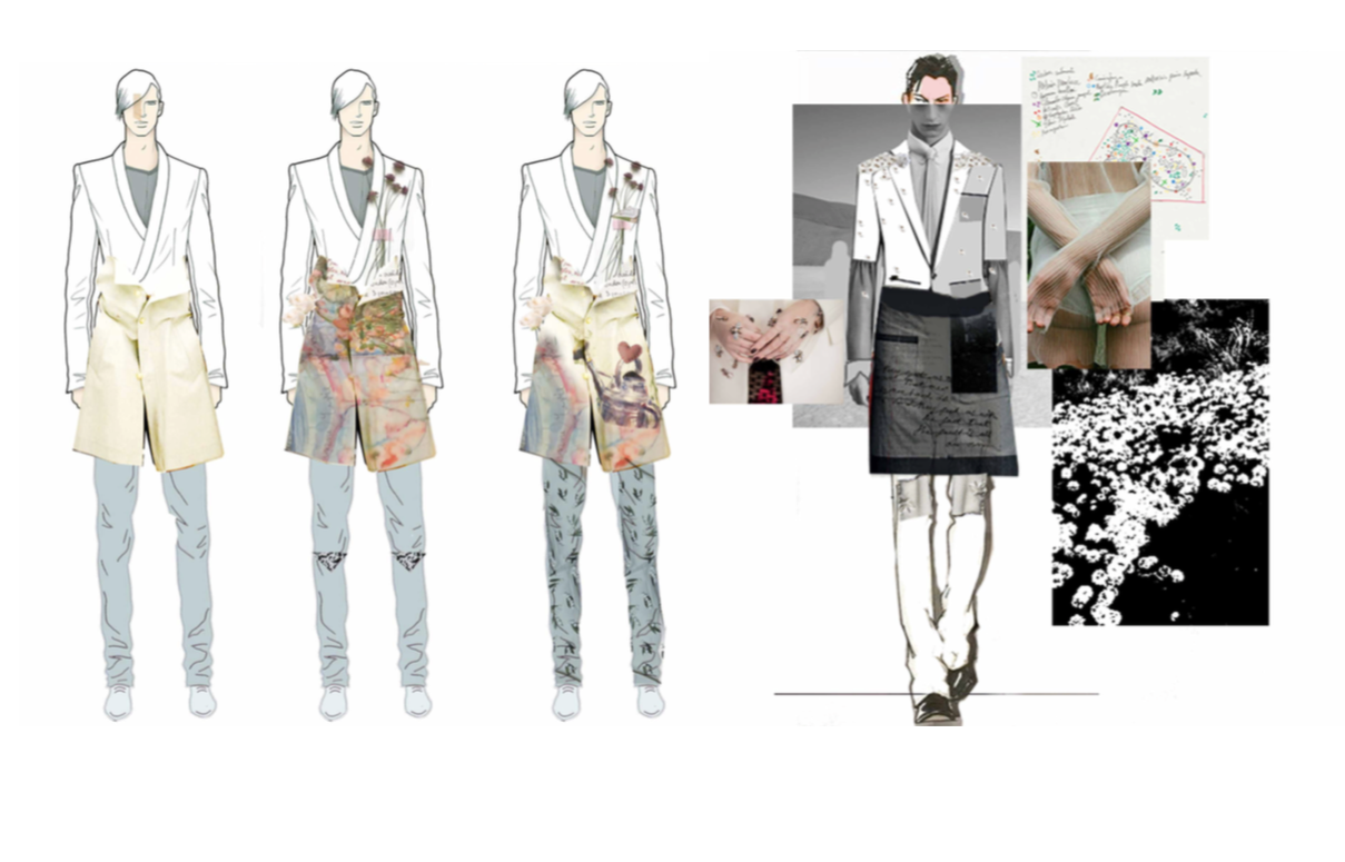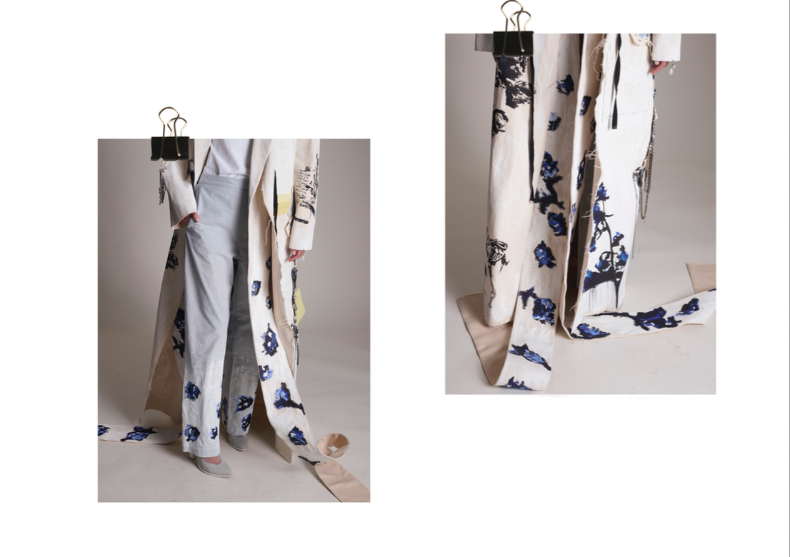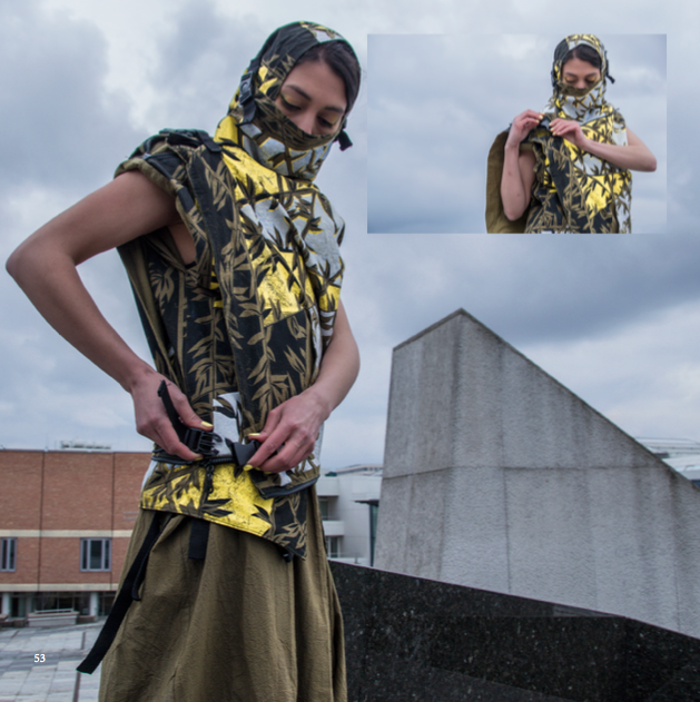 Nessel, in all seinen Qualitäten, wird das Rohmaterial darstellen, somit liegt ein starker Schwerpunkt in der Materialbearbeitung, denn der Stoff soll dem Entwurfskonzept entsprechend manipuliert werden. Eine große Rolle spielt hierbei die Printentwicklung mit Druckmotiven, die konkret realistisch zu idealisiert abstrakt interpretiert werden können. In Teamwork wird eine Druckvorlage als platzierter Print oder Rapport erstellt, die dann wieder individuell für die zu entstehende Silhouette genutzt wird, als kleines Emblem bis großflächig eingesetzt.