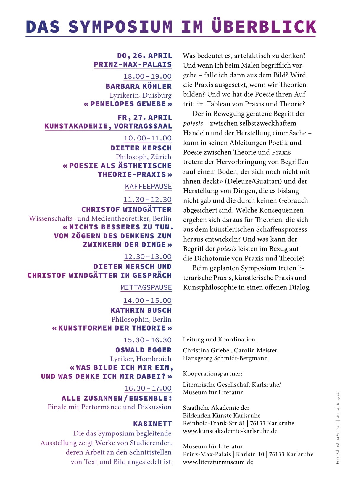 Im Rahmen des Symposiums „Praxis, Theorie, Poesie“ an der Staatlichen Akademie der Bildenden Künste, Karlsruhe