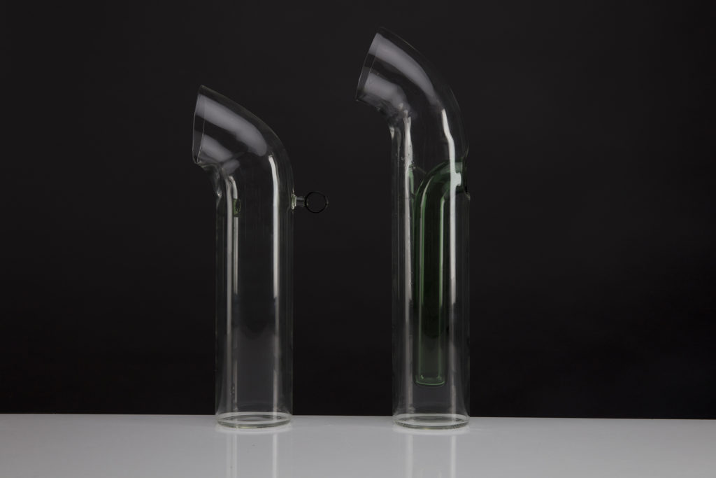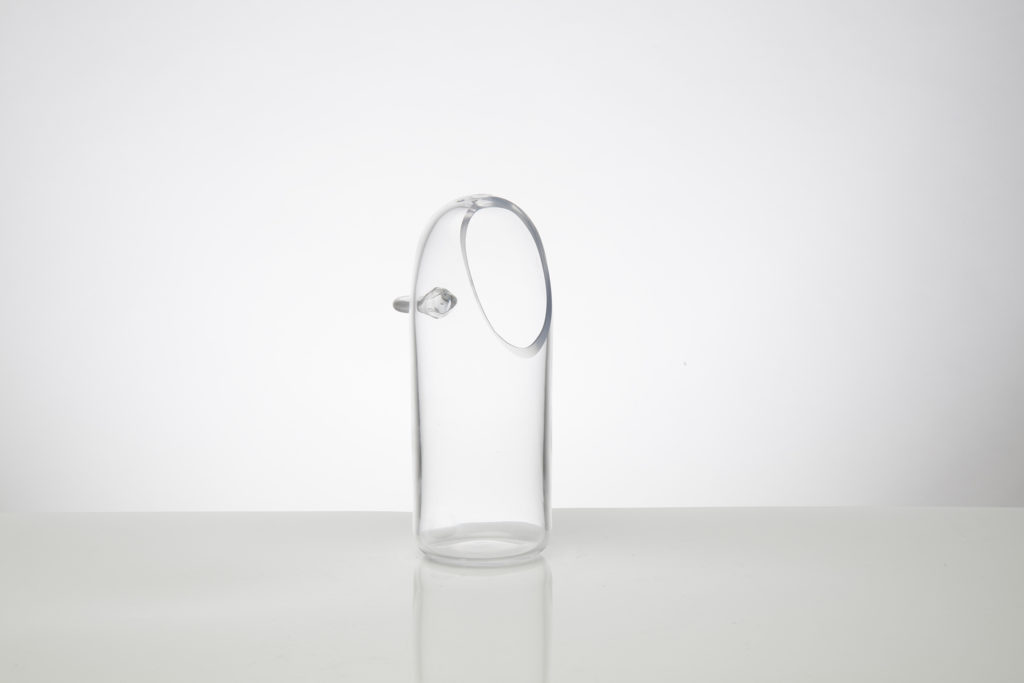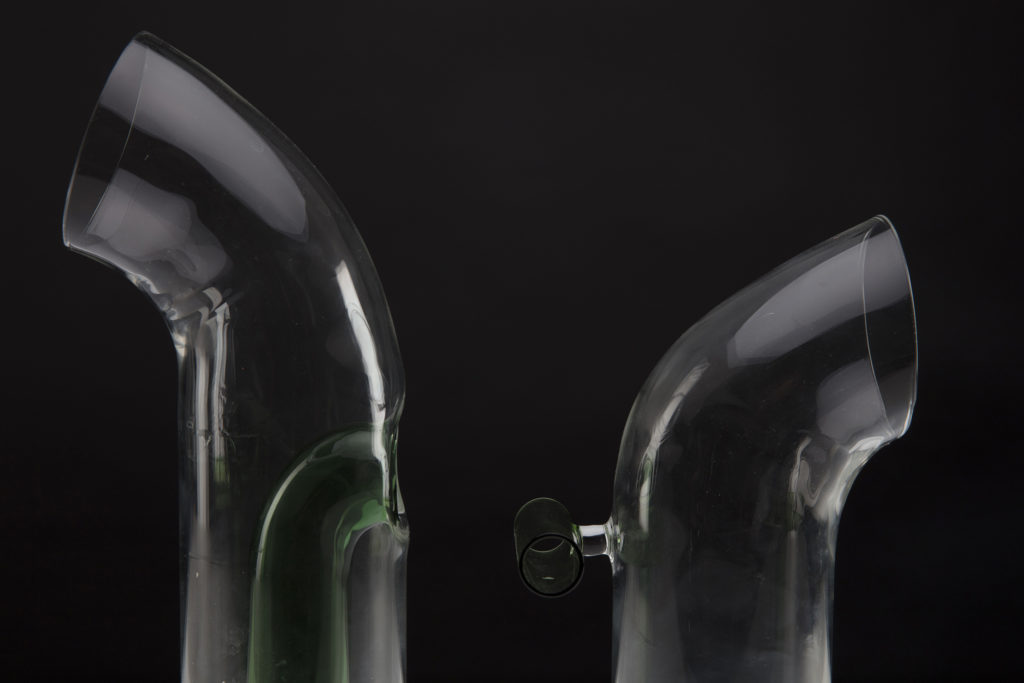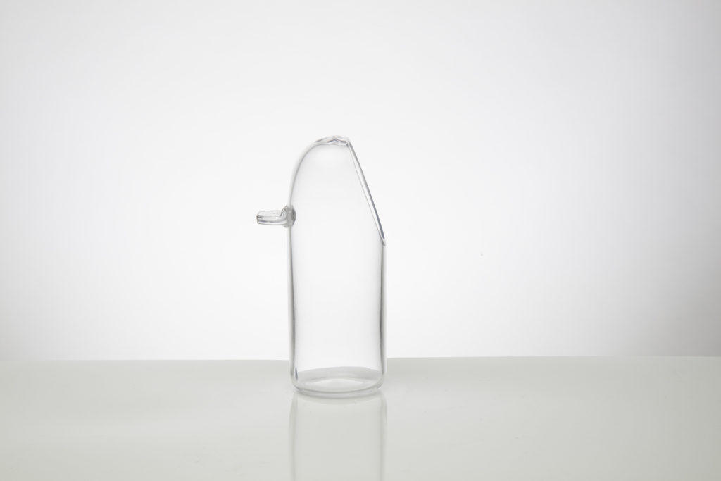 The laying red wine decanter gives the wine air and allows it to develop taste. For serving wine the decanter is handled upright. The cooler has one part for ice and one for white wine. It allows serving wine in one direction without spilling water.
