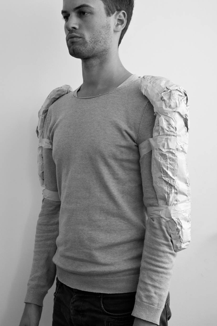 Aus einer intensiven Auseinandersetzung mit schützenden Hüllen im Rahmen der Diplomarbeit Matrjoschkas und Eierschalen sind die Entwürfe Sans-serif Backpack und die Balloo Collection hervorgegangen. Der Rucksack rückte dabei als die Summe seiner Hüllen in den Vordergrund. Als adäquat zeigte sich bei dieser Betrachtungsweise die Nutzung dreidimensionaler Textilien. Sans-serif Backpack wird in einem Stück gefertigt und nutzt dabei die, in ihren Potenzialen noch wenig ausgeschöp! e, Technologie des dreidimensionalen Strickens. Die Balloo Collection besteht aus einem Abstandsgewirk, gewöhnlich nur für polsternde Zwecke verwendet, hier aber als formgebendes und schützendes Gestaltungsmerkmal angebracht.