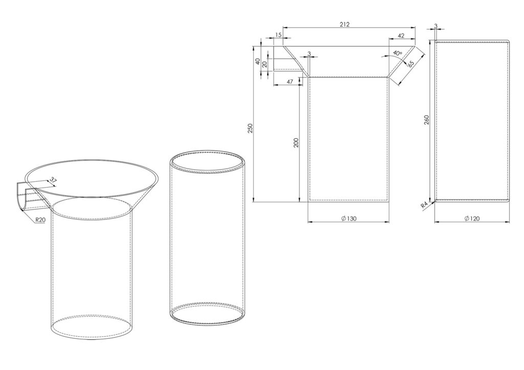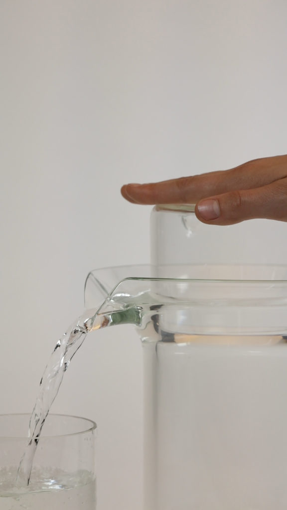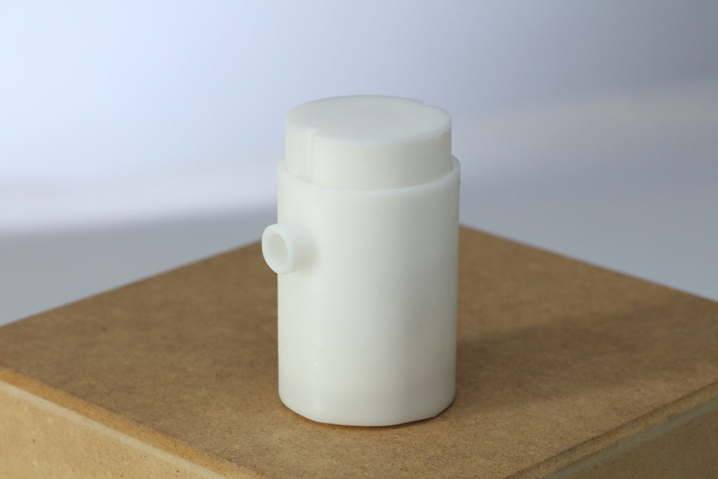 These static taps are used with a displacement piston to build up pressure and let the liquid flow through thoughtful interaction with the objects. One big water tap with a pouring spout and another smaller object with an injection straw.