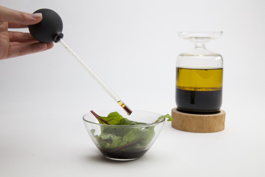 The small, sculpturally shaped decanter, which is – to be precise– a pipette bottle, makes an interesting contribution to food culture. The GUETS-FLACHL allows you to distribute a special oil and vinegar well dosed.