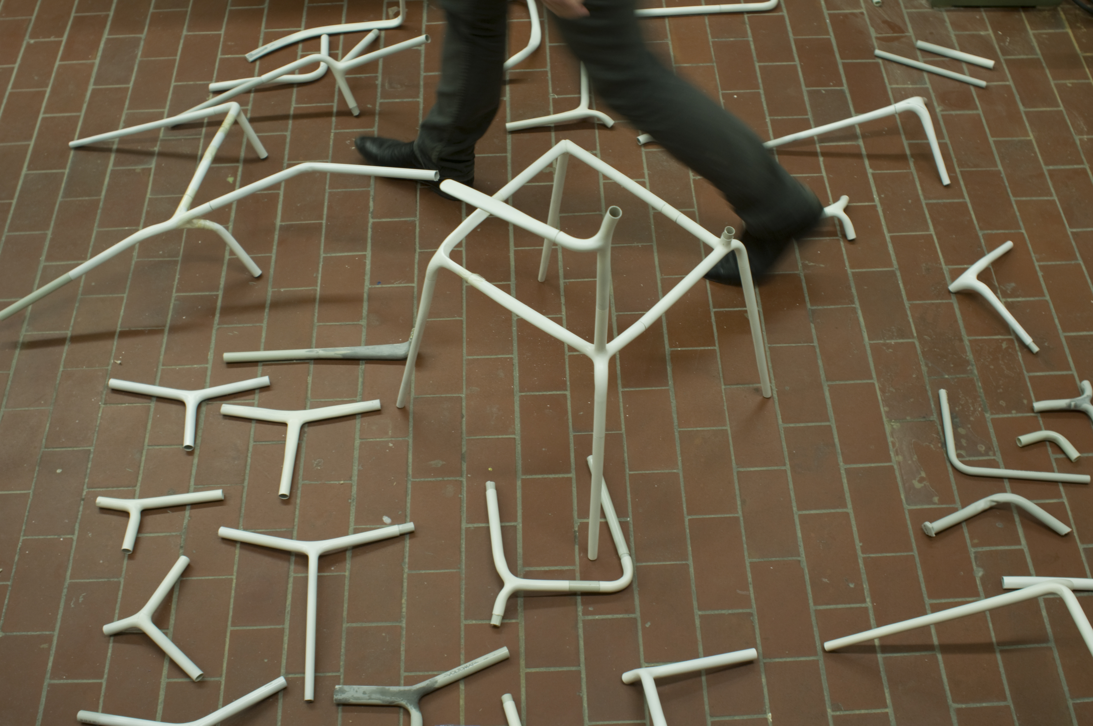 Beim IHU-Verfahren wird ein mit Wirkmedium gefülltes Halbzeug, durch den gesteuerten Aufbau von Innendruck umgeformt. Dabei liegt das Halbzeug in einem mit der abzubildenden, formgebenden Innenkontur versehenden Werkzeug. Die IHU-Technologie ermöglichte es Höltje, das Dogma des gleich bleibenden Durchmessers des Halbzeugs Stahlrohr zu durchbrechen. So konnte er den Strecken Kontur geben, Verzweigungen bilden und den konstruktiven Aufbau eines Metallrohrstuhls wie gewachsen aussehen lassen. Der entstandene Stuhl veranschaulicht sowohl die technischen Möglichkeiten, als auch die ästhetische Innovation der IHU- Technologie. Im engen Dialog mit den Mitarbeitern des Fraunhofer IWU entstand ein Projekt, das die Chancen und Potentiale dieser innovativen Technologie für vielfältige, neue Anwendungen in der Möbelindustrie testet und auslotet.