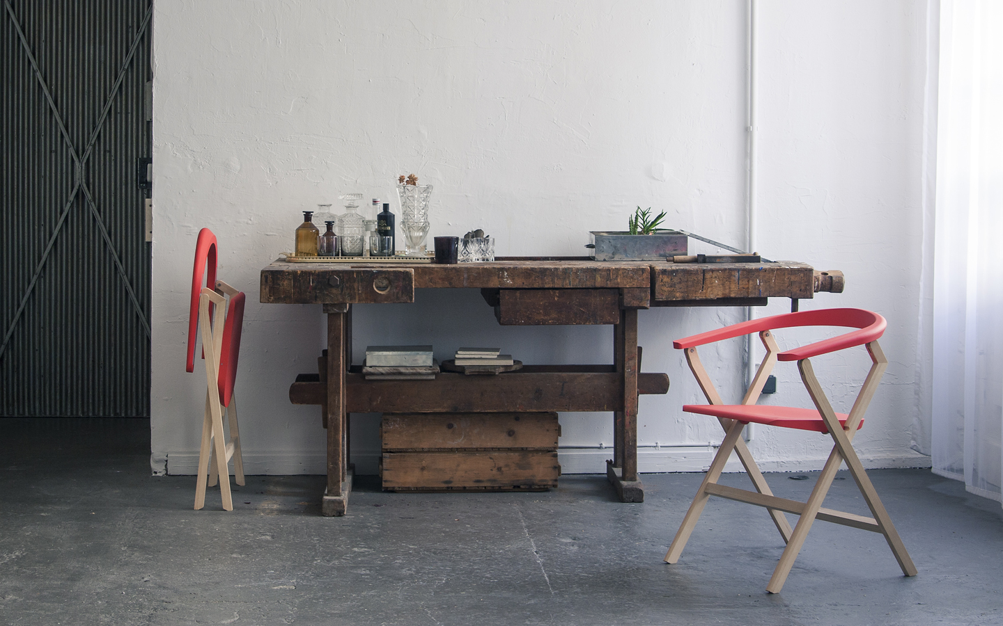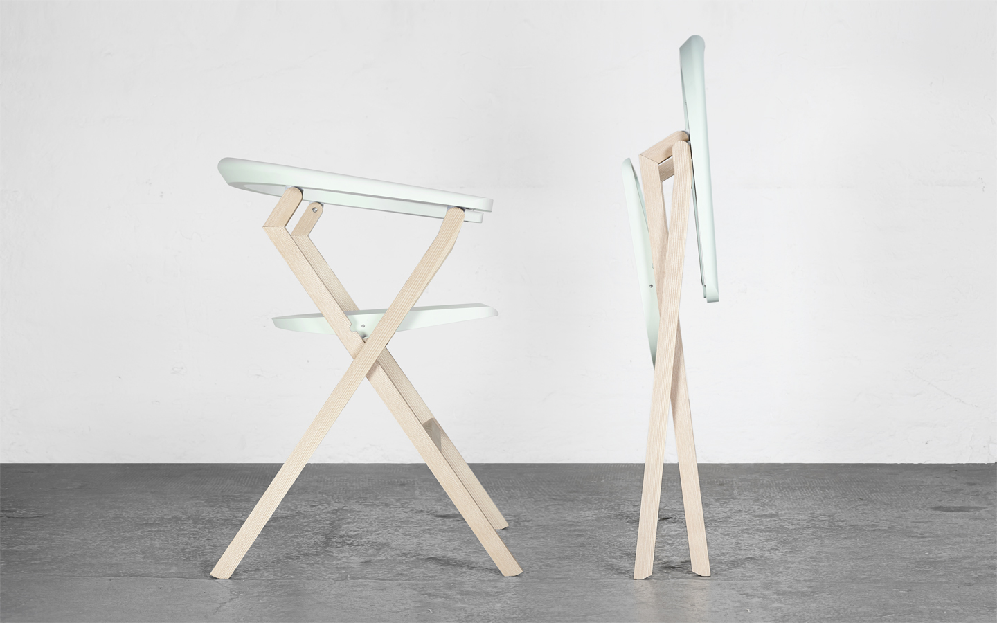 STANDBY ist ein Klappstuhl, der im Geiste von Knirps, Springmesser und Chapeau-Claque mit einer Hand entfaltet werden kann. Im zusammengeklappten Zustand kann er sich frei stehend in die Wohnlandschaft integrieren und seine Potentialität anbieten.