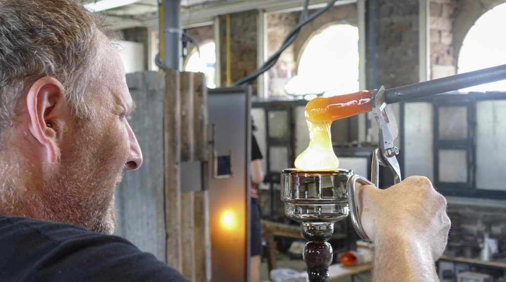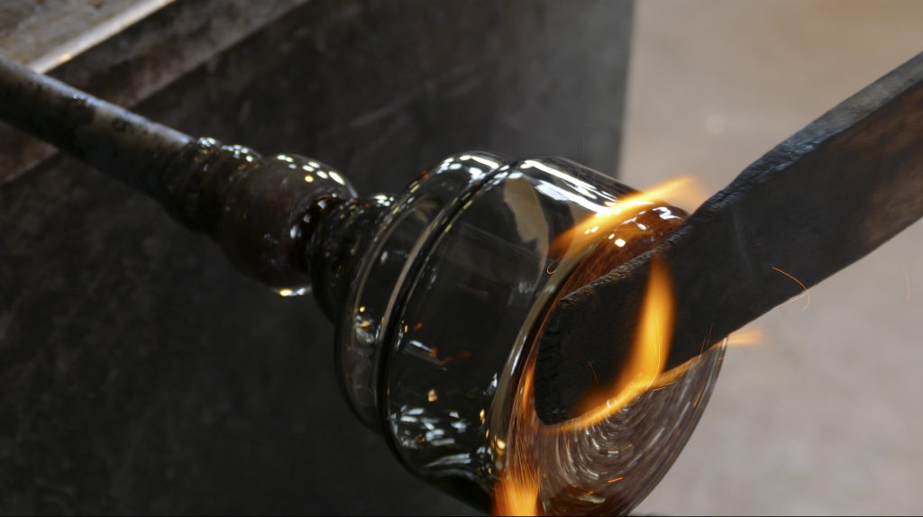 In the process of making, glass glows and radiates heat. At the same time it has a waterlike quality and needs to be kept from flowing away. STREAM tries to catch the transient moment of liquid glass in movement until it freezes into its final form.