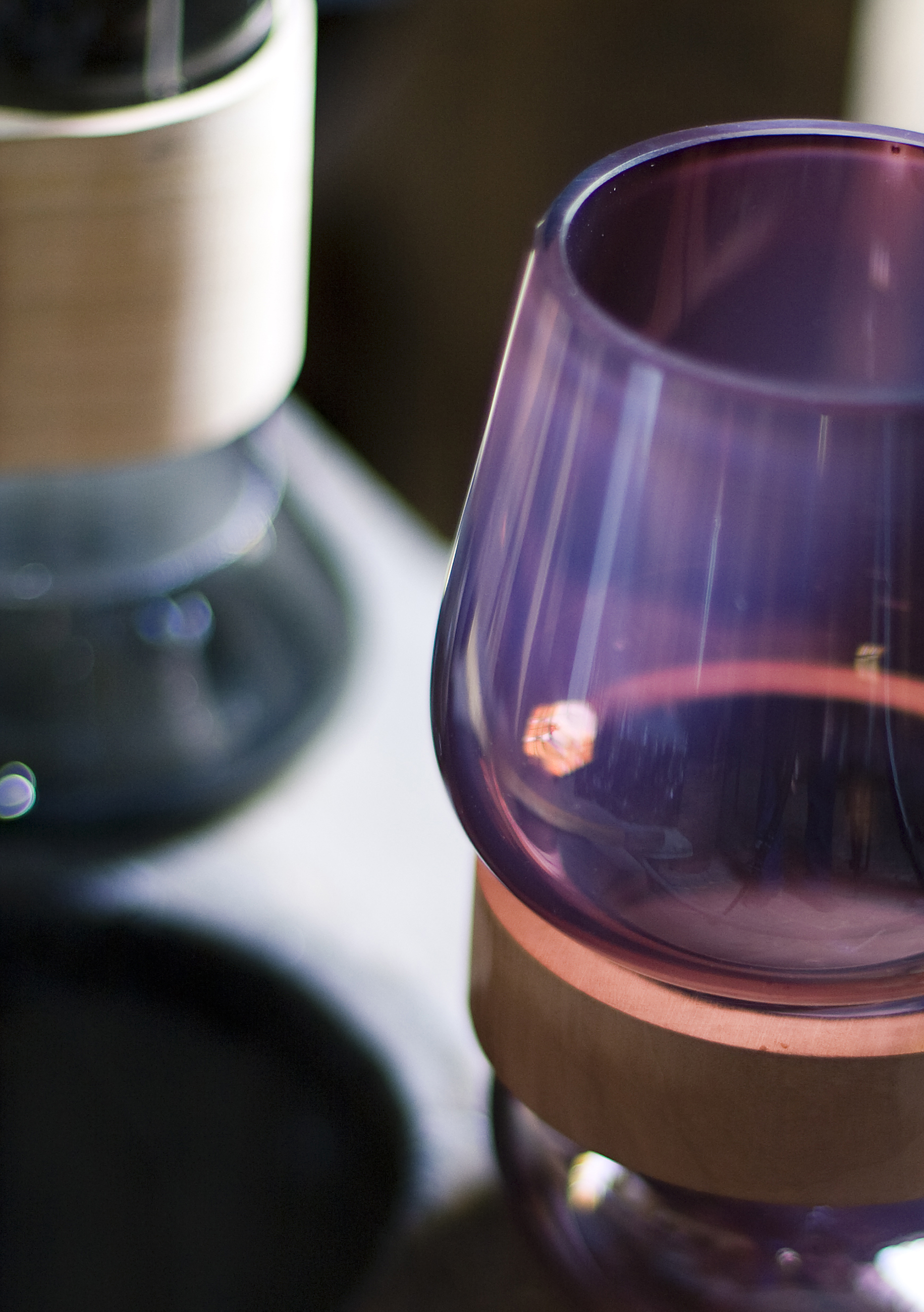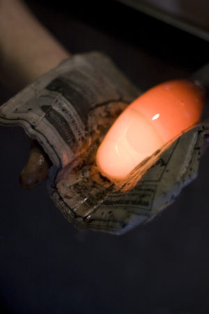 Innerhalb meiner Arbeit habe ich, im Dialog mit unterschiedlichen Materialien, experimentelle Produktionsspuren entwickelt und nach Qualitäten von physischen Berührungen gesucht, die sich im Material abzeichnen. Drei Experimente habe ich zu Objektreihen ausgearbeitet, die traditionelle und industrielle Verfahren des mundgeblasenen Glases uminterpretieren und auf diesem Weg, eine neue Formsprache und Produktionstechnik ermöglichen. Entstanden sind authentische Objekte, die ihre Spuren der Herstellung bewusst kommunizieren und sie als gestaltendes Element nutzen.