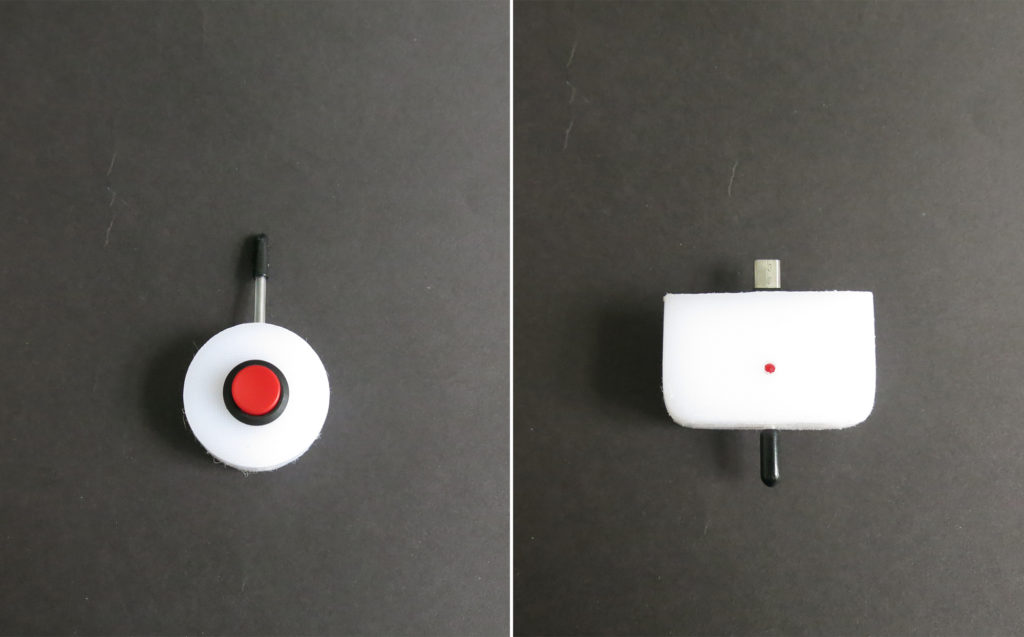 The other sends an emergency call with GPS data to the nearest emergency center, when the button is pressed.