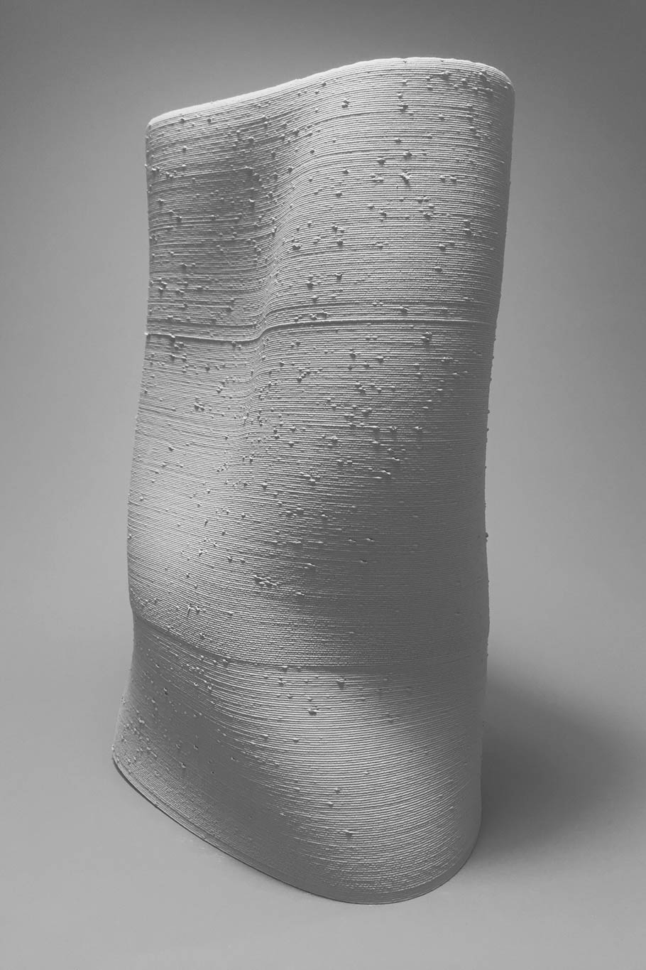 Die skulpturale Objektreihe zwischen verwandt und unbekannt – untersucht die Grenzen zwischen Vertrautheit und Fremde. Durch Glasur- und Materialexperimente wurden hautähnliche Oberflächenstrukturen erzeugt. Die Formen sind durch Ertasten des Körpers und anschließende Übertragung in ein CAD Modell entstanden.