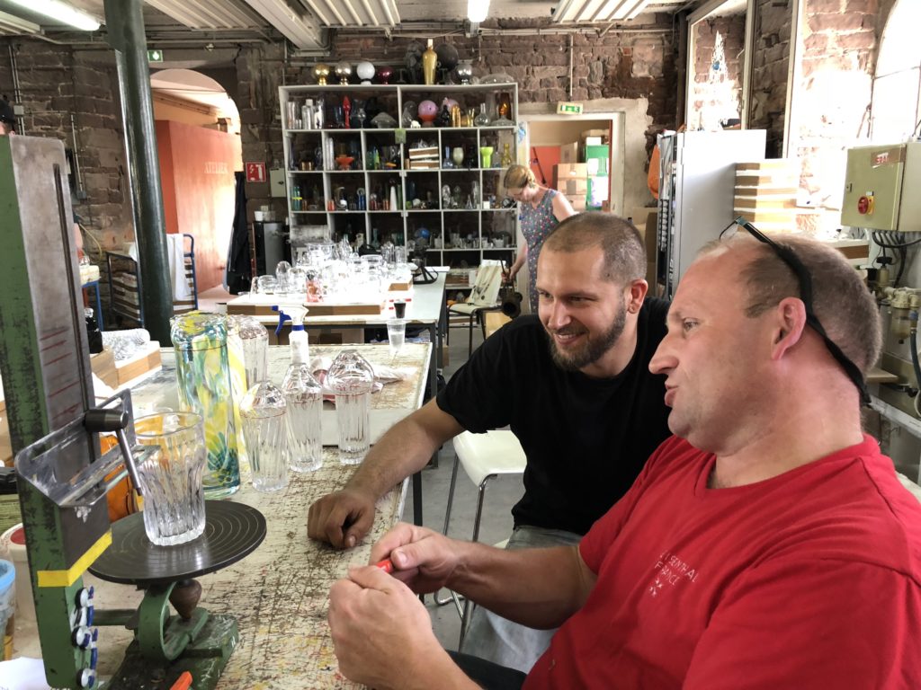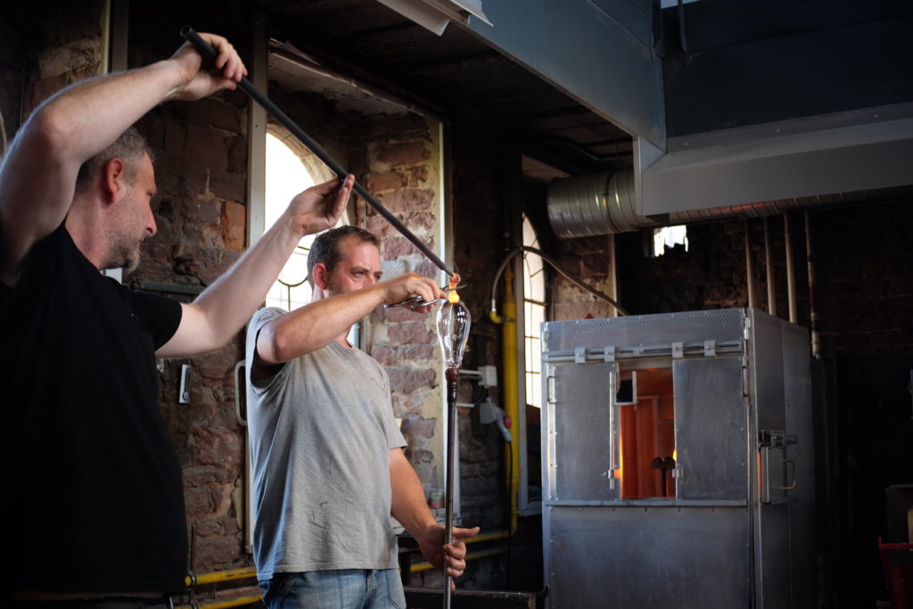 With students of HBK-Saar and professor Mark Braun we worked for a week at Centre International d’Art Verrier Meisenthal in France. All students realized several designs with the master glassblowers. The projects will be presented at designfestival Designblok in Prag 2018. The results of the workshop can be found here