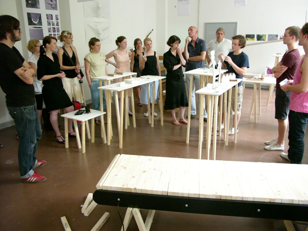 Genau hier erzielten wir unseren größten Lerneffekt. Nach anfänglichen Hemmungen begannen wir, in unterschiedlicher Art und Weise „drauf los“ zu werken. Ob man es „den Kopf ausschalten“ nennt oder Stück für Stück arbeiten, das heißt von einem kleinen Ansatz oder Objekt weiter zu neuen Ideen oder Ausfor- mungen zu gelangen, ist unerheblich. Wichtig war, die Erfahrung, ohne konkretes Ziel und einer intensiven Betreuung und damit verbundenen Leitung durch die einzelnen Entwicklungsphasen zu gehen, sich frei zu machen, auszuprobieren und schlussendlich Ergebnisse zu erzielen.