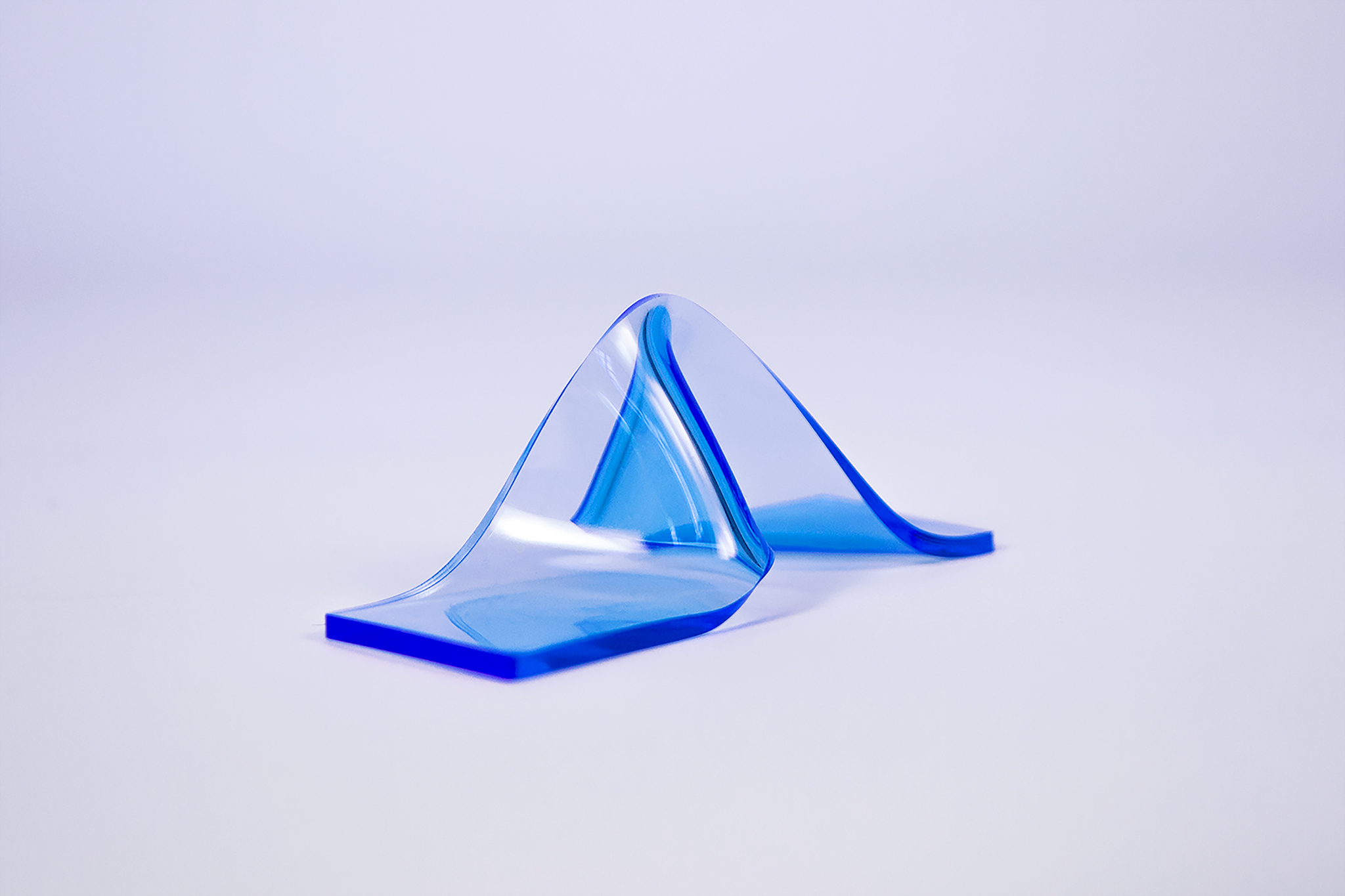 Mein Ausgangspunkt war ein hartes Material, welches durch Verformungen weich werden und weich wirken kann. Ich habe gedrückt, geknickt, gebogen, gedreht, gequetscht und versucht Weichheit in das Material Acrylglas zu bekommen.