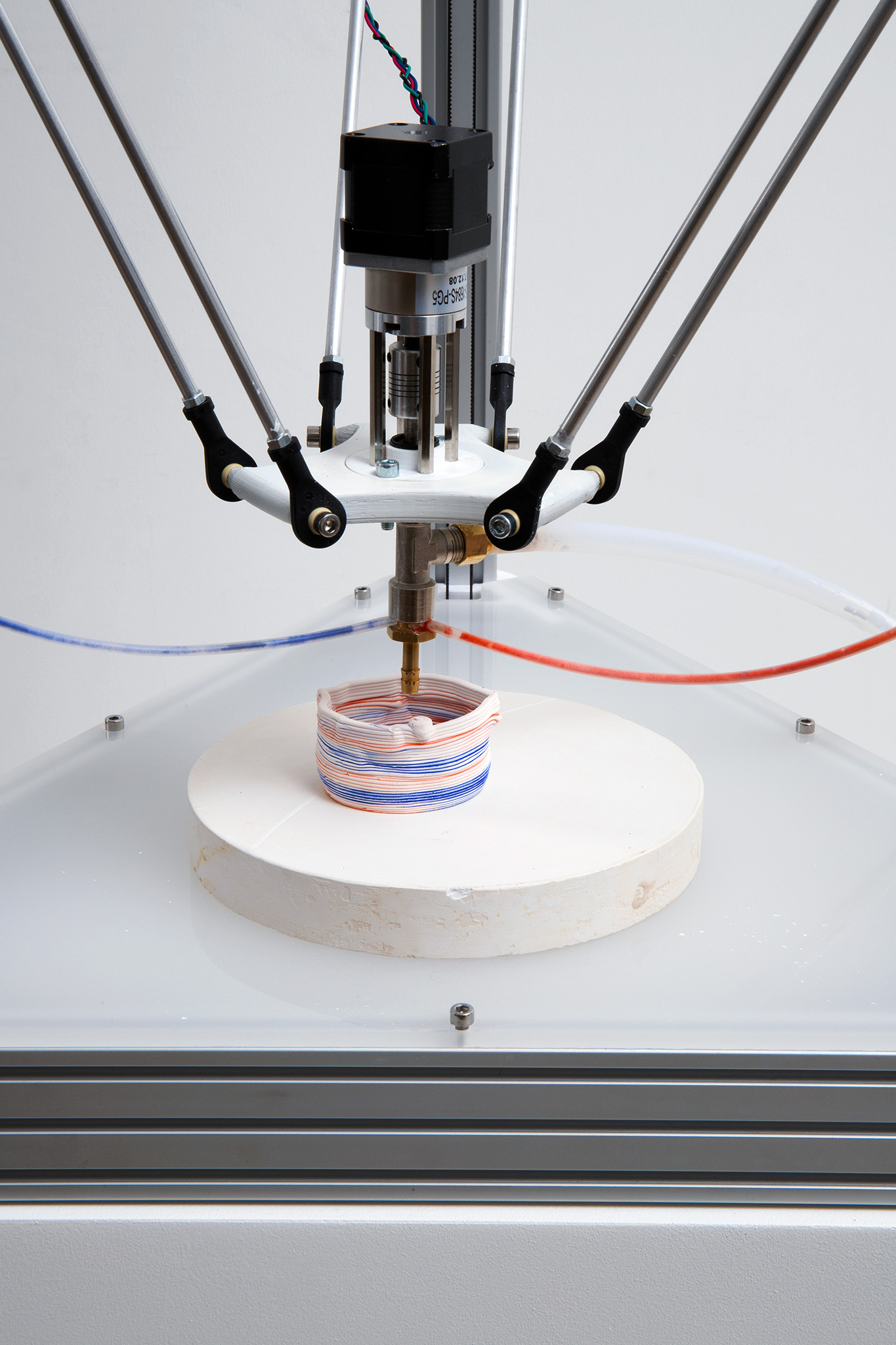 Me_chine is the attempt of an interactive dialogue between man and machine and examines the potential of modern production for sustainable alternatives and new references to our product culture.